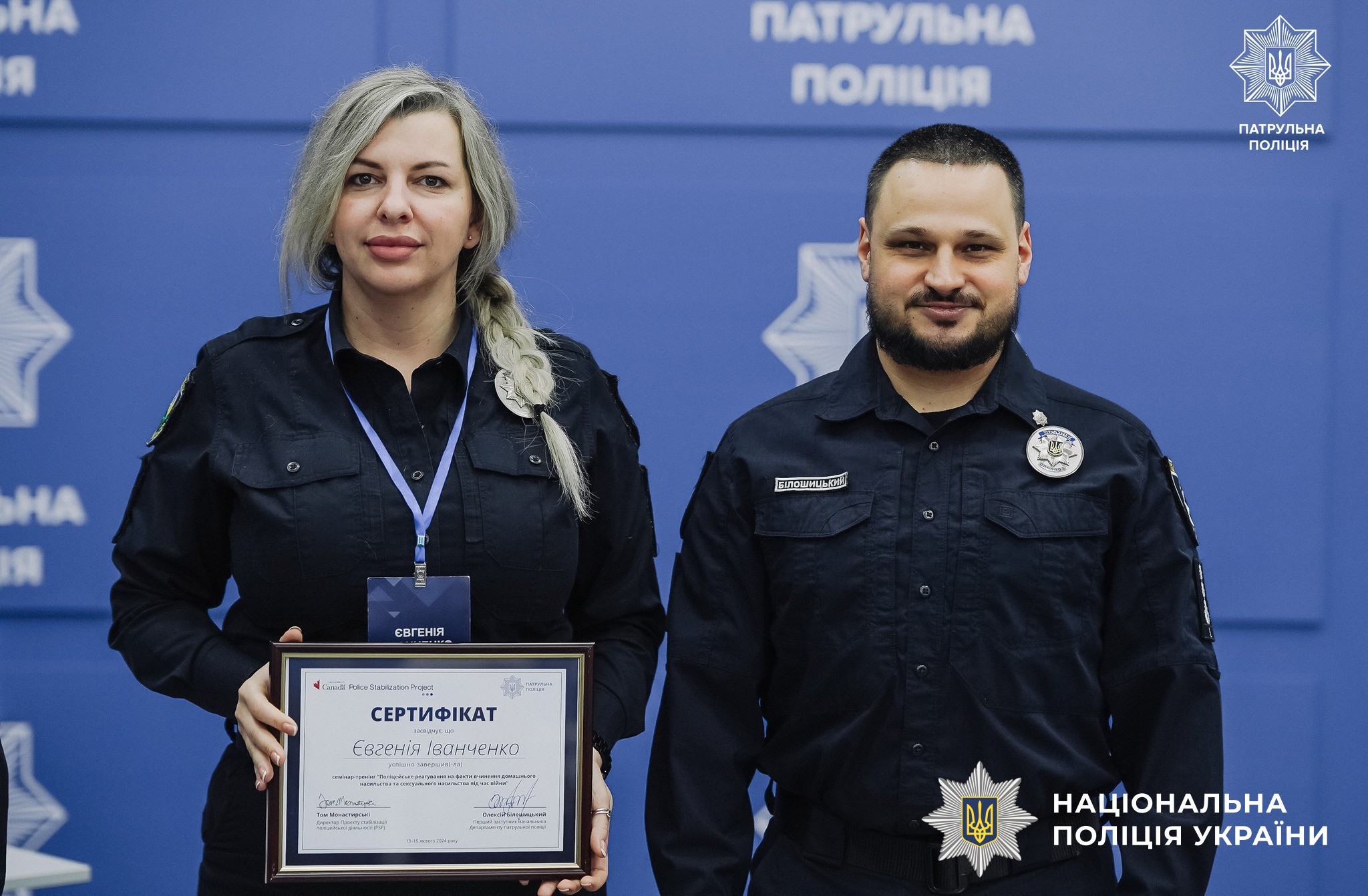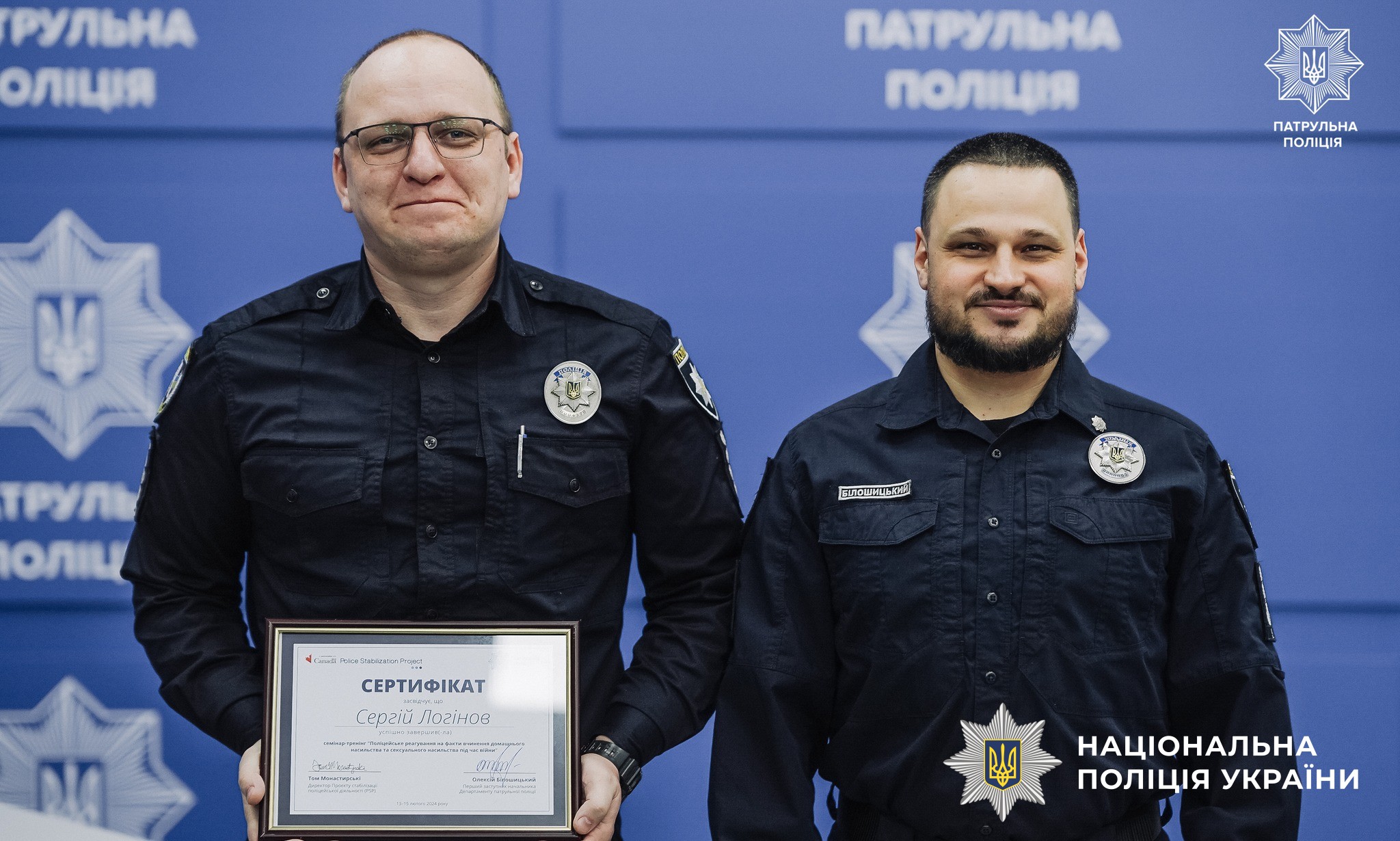 Перший заступник начальника Департаменту патрульної поліції Олексій Білошицький привітав патрульних із проходженням тренінгу та вручив сертифікати.