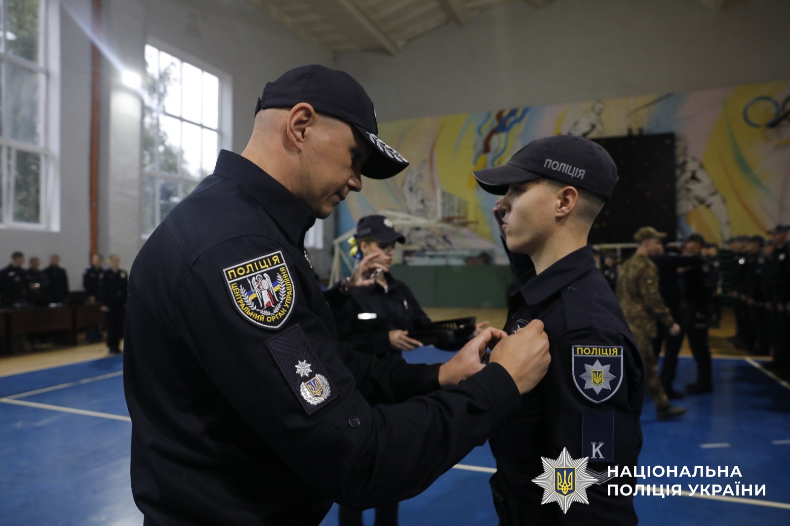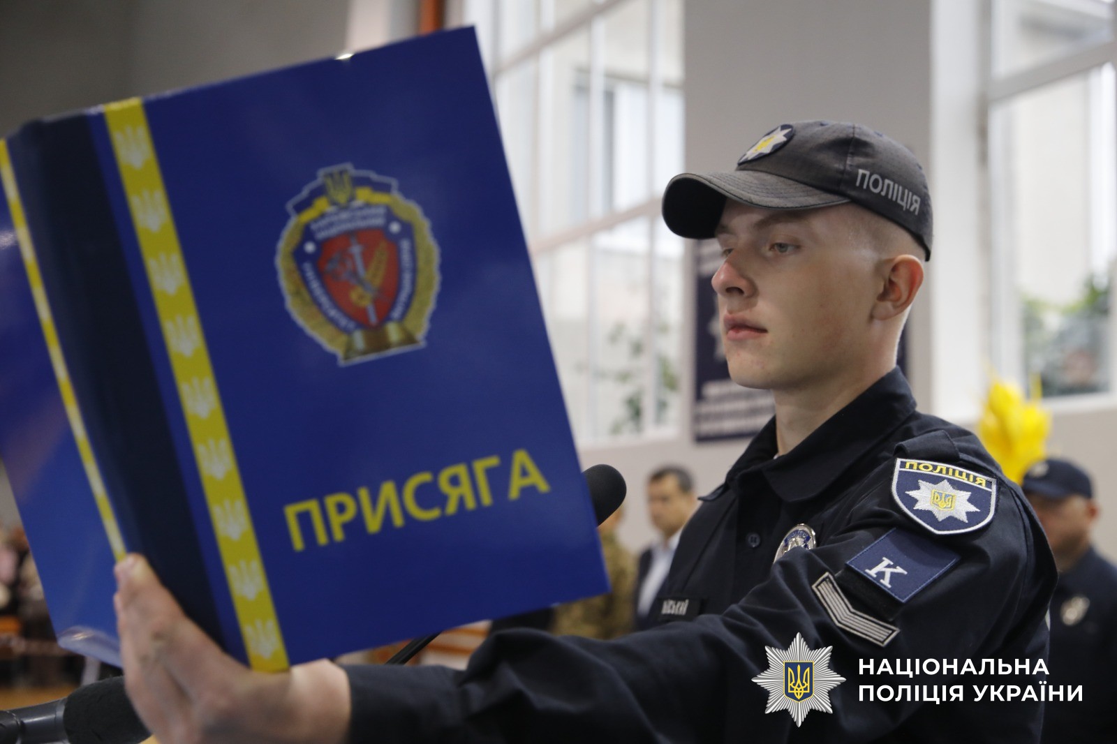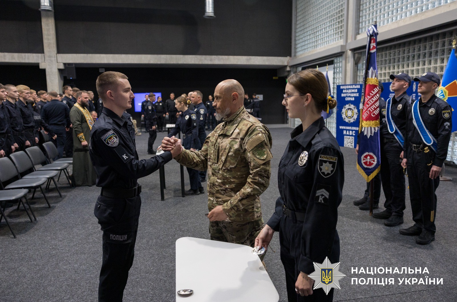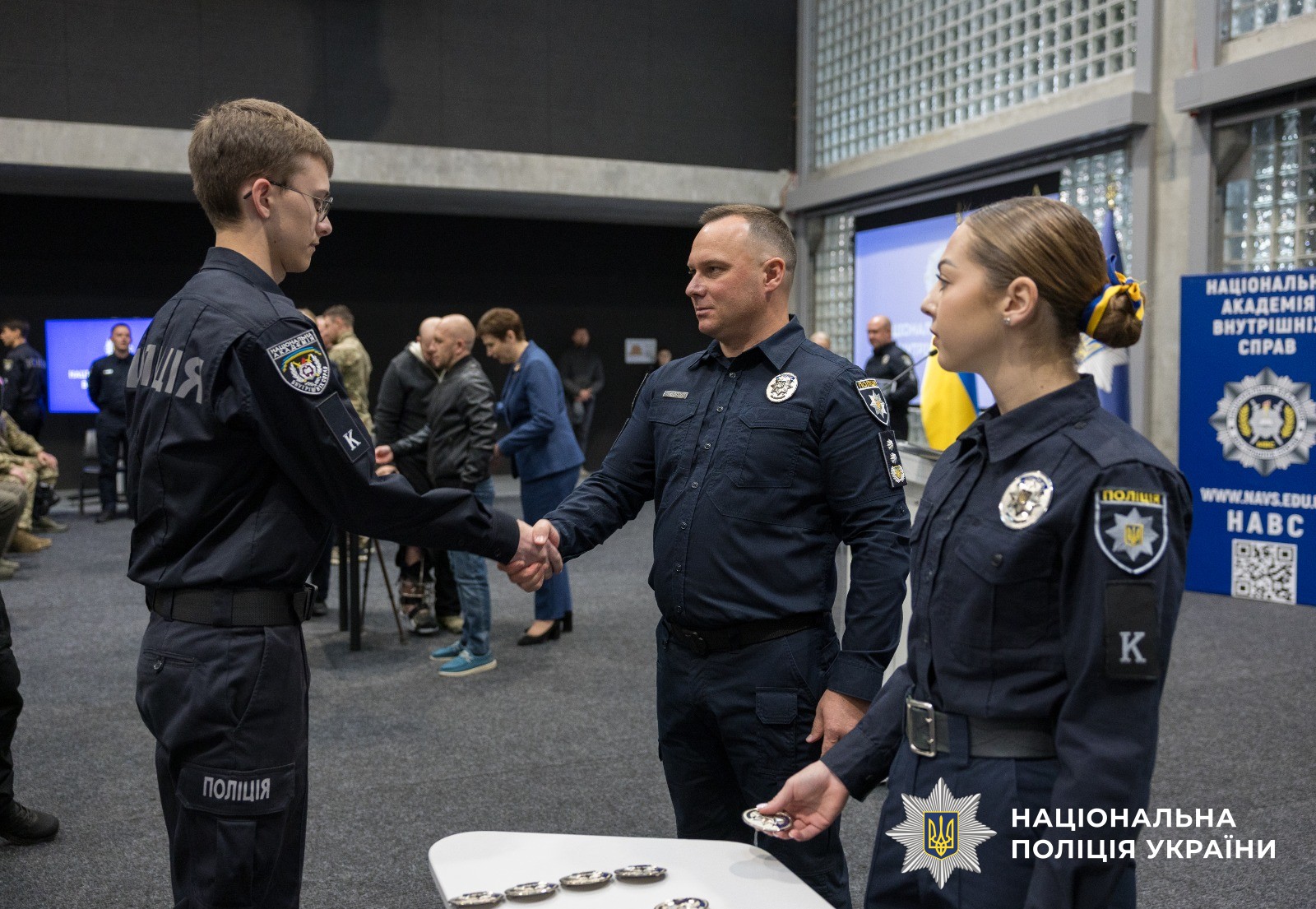 Під час урочистостей молодим поліцейським вручили спеціальні жетони, а також відзначили кращих співробітників Національної академії внутрішніх справ та відомчих університетів.