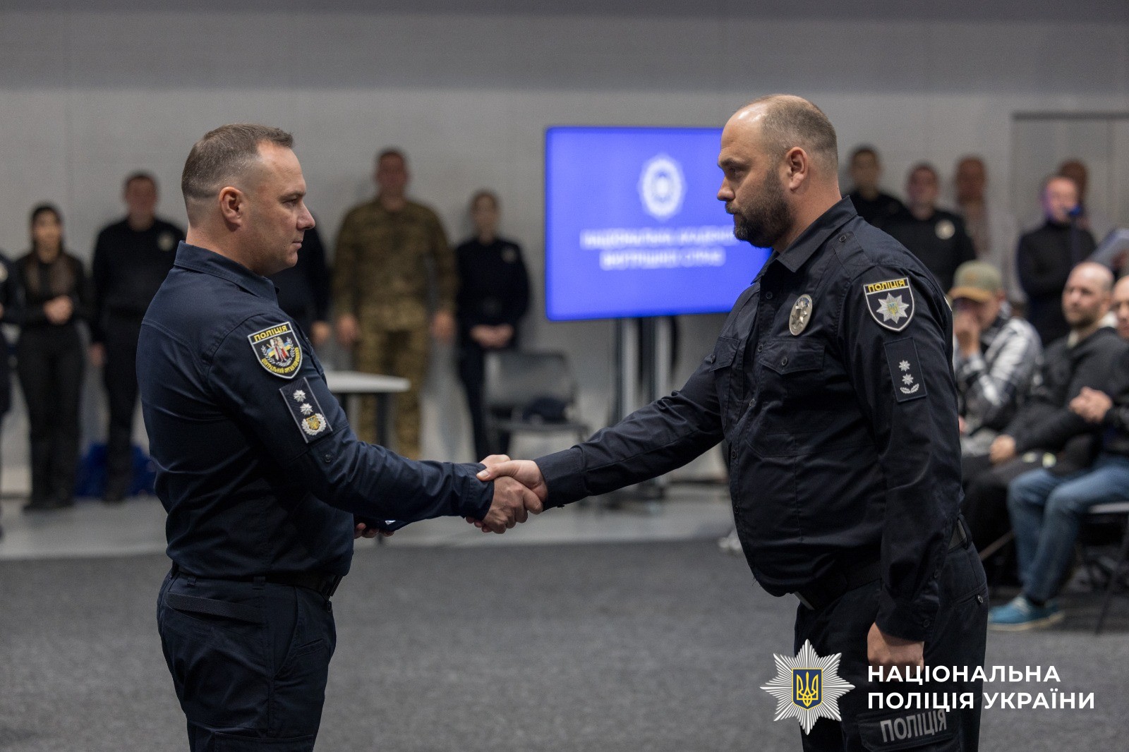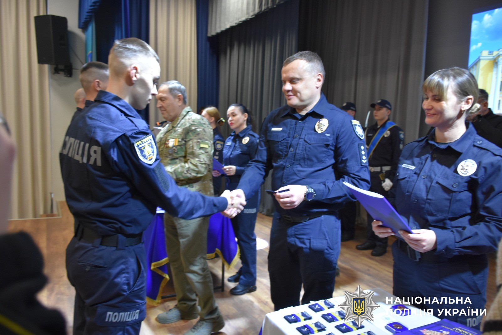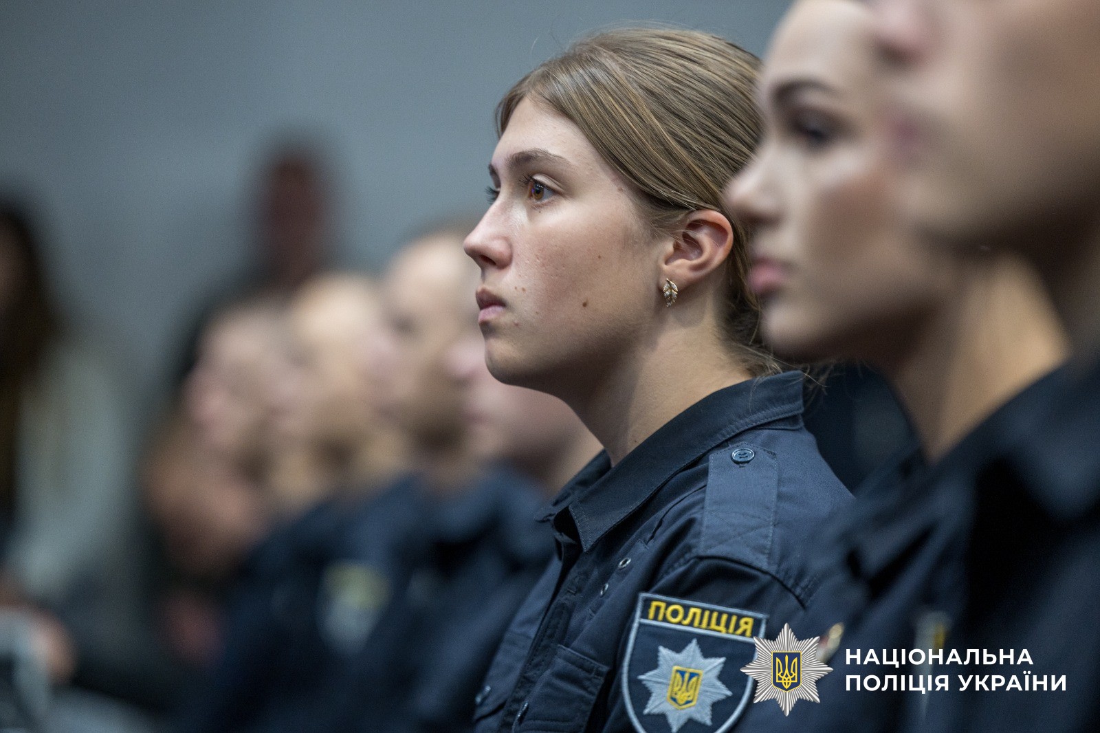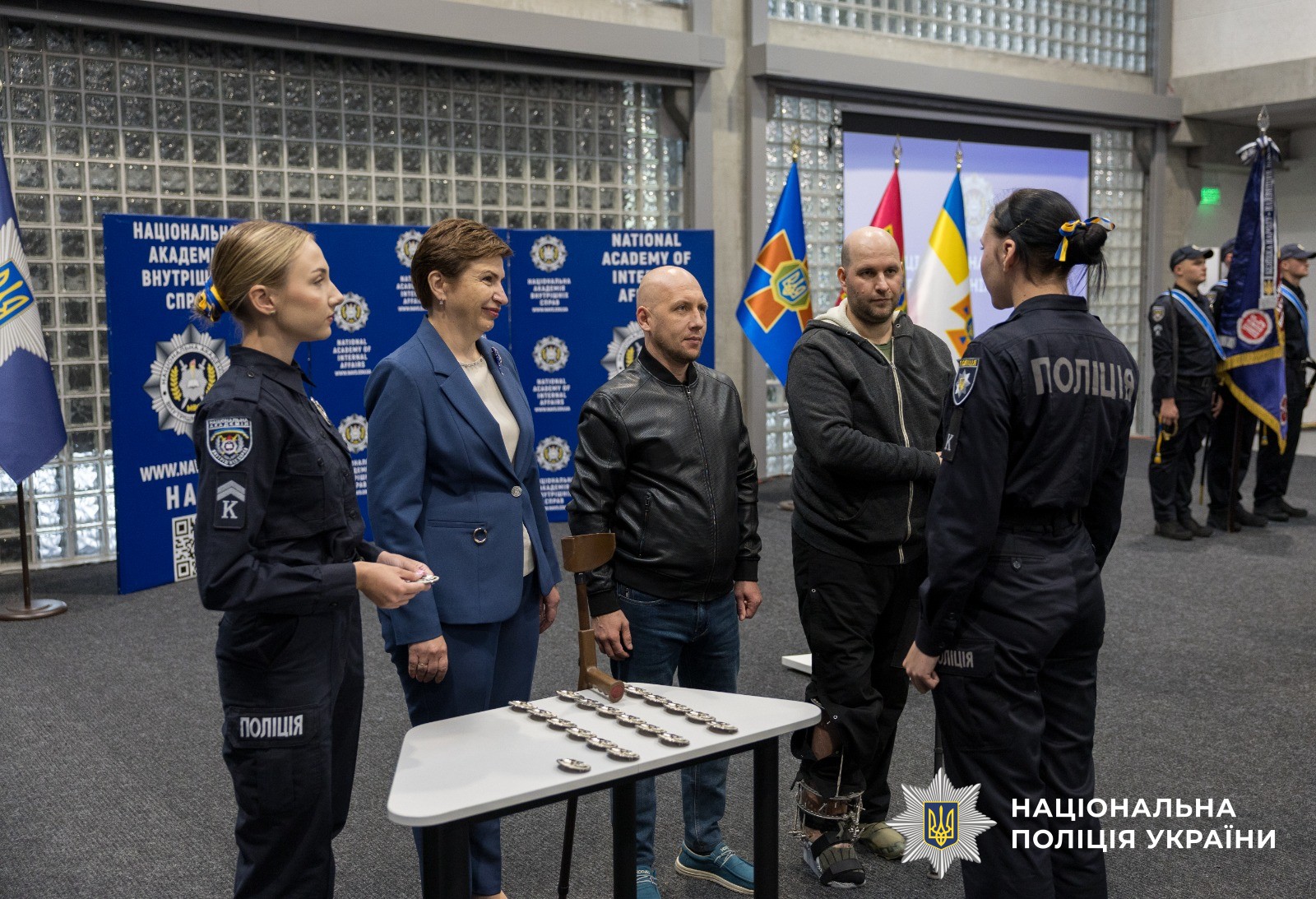 Під час урочистостей молодим поліцейським вручили спеціальні жетони, а також відзначили кращих співробітників Національної академії внутрішніх справ та відомчих університетів.