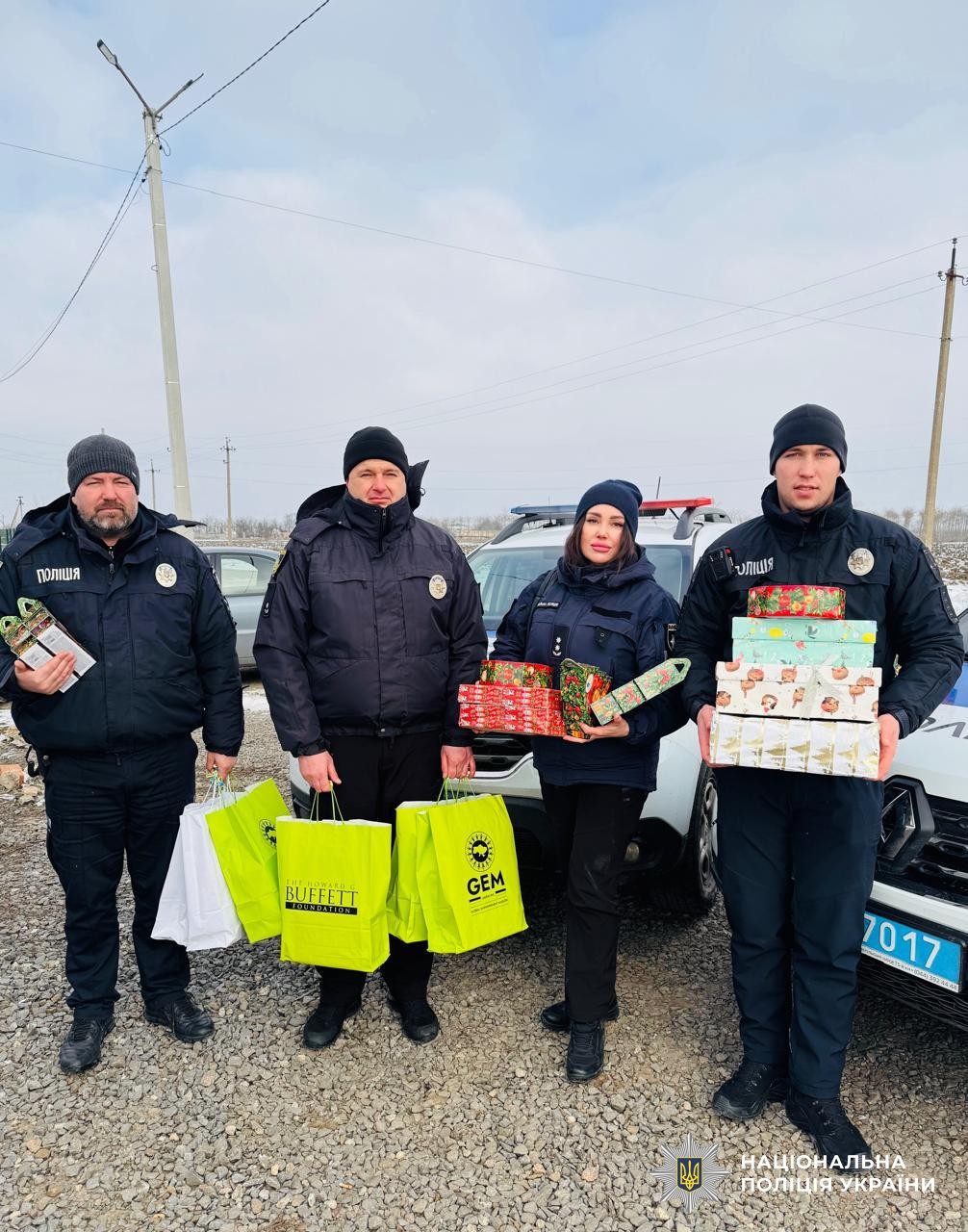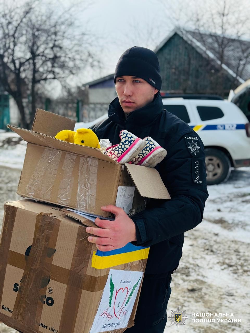 Ювенали спільно з поліцейськими офіцерами громад привезли до тимчасового місця проживання сім’ї продукти, одяг і взуття для дітей, постільну білизну, засоби особистої гігієни, канцелярське приладдя, іграшки та солодощі. Усі пакунки передали родині особисто, аби підтримати не лише речами, а й увагою та турботою.