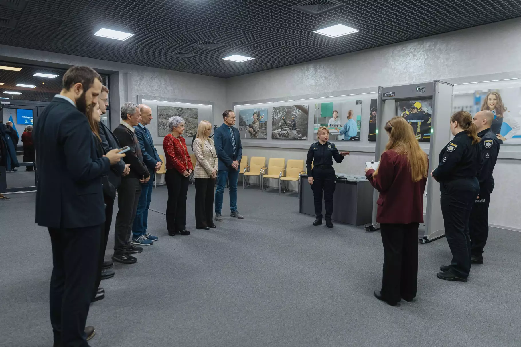 На офіційній церемонії передачі безпекового обладнання були присутні заступниця Міністра внутрішніх справ України Катерина Павліченко, Оперативний директор GS Foundation Стефан Шварц, Координатор проєкту з гендерних питань GS Foundation Сюзанна Грейтер, Начальниця Служби освітньої безпеки Національної поліції України Надія Ситник, представники МВС, Національної поліції України та GS Foundation.