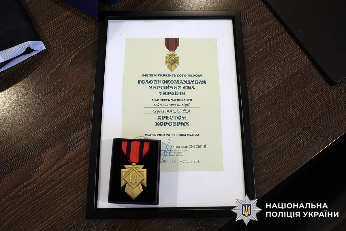 Боєць штурмової бригади Нацполіції «Лють» з Хмельниччини Сергій Маслянко нагороджений почесним нагрудним знаком Головнокомандувача ЗСУ «Хрест Хоробрих»