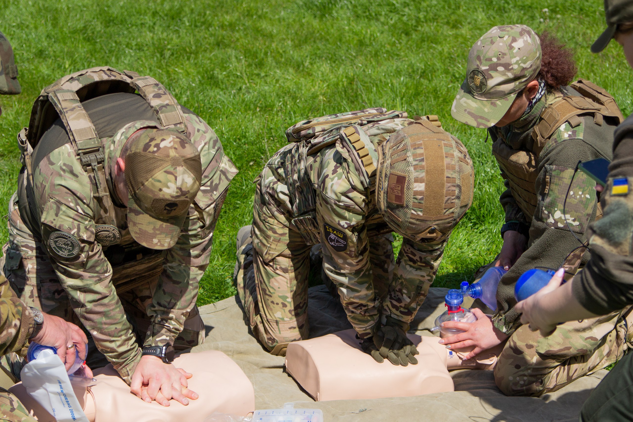 На курсах, які рятують життя, бійці тренувалися евакуйовувати поранених з поля бою, зупиняти кровотечу, робити непрямий масаж серця, серцево-легеневу реанімацію. Обов’язкові етапи – теоретичний та практичний курси. Саме останньому було приділено найбільше уваги.
