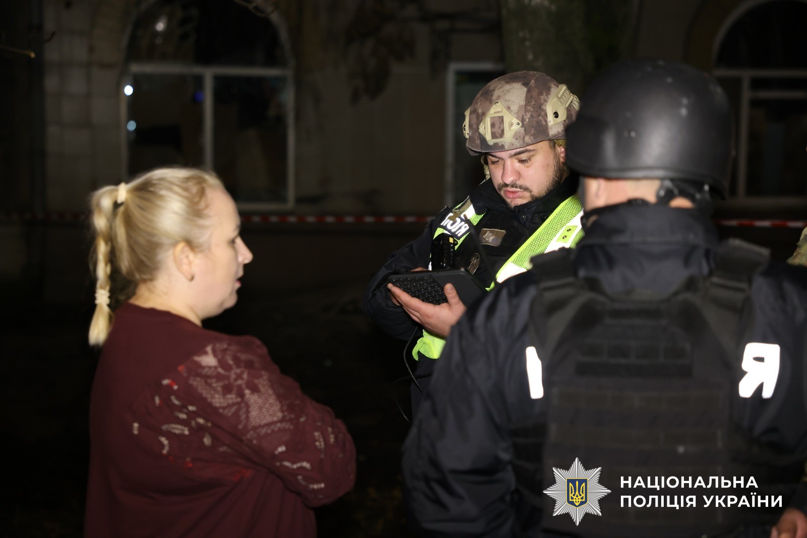 Правоохоронці фіксують наслідки влучання російського БпЛА по цивільній інфраструктурі в обласному центрі.