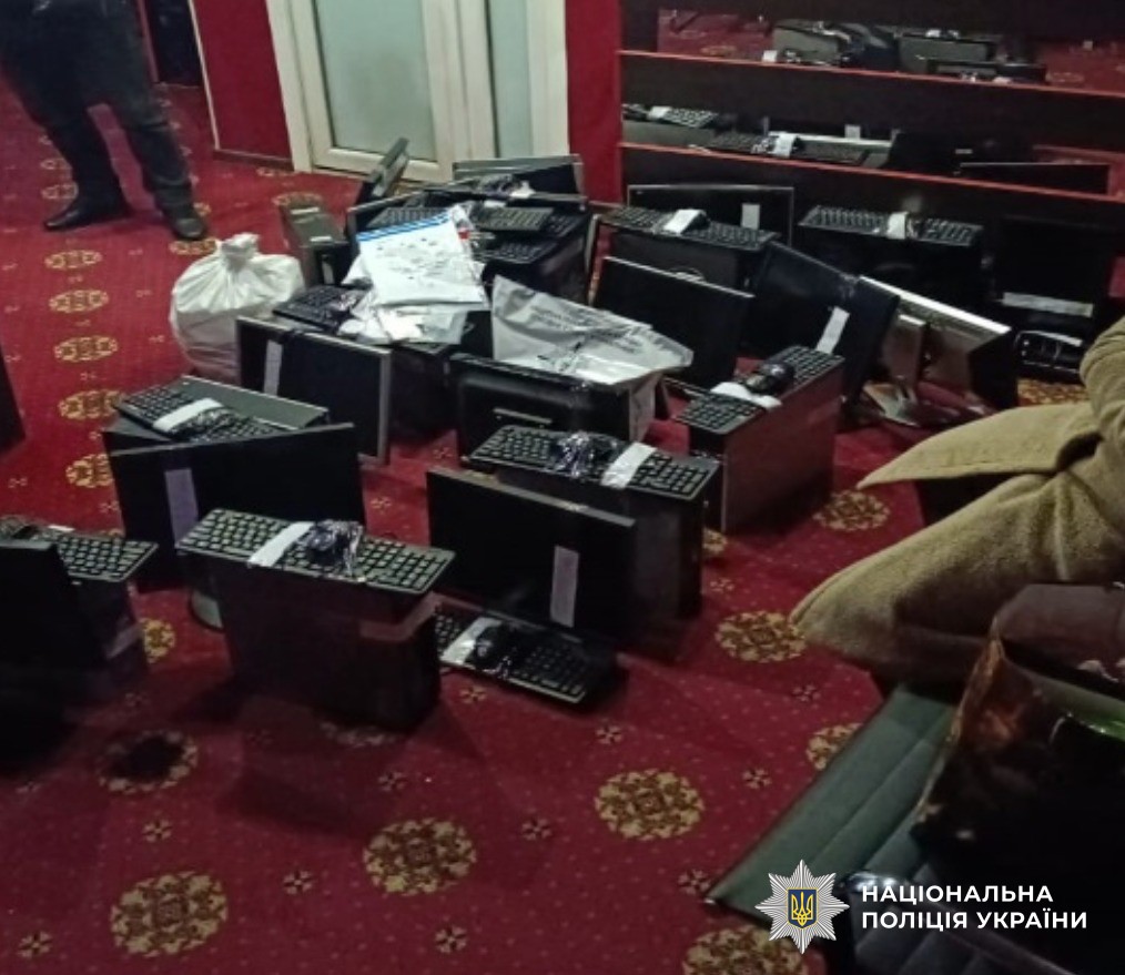 У листопаді минулого року поліцейські за силової підтримки спецпризначенців КОРД провели 16 обшуків за місцями знаходження нелегальних гральних закладах та проживання ділків. Тоді вилучили майна, загальною вартістю понад 2,5 млн грн — майже шість десятків комп’ютерів та іншу компʼютерну техніку, гральні автомати, касові апарати, спеціальні сервери, мобільні телефони та «чорнові» записи.