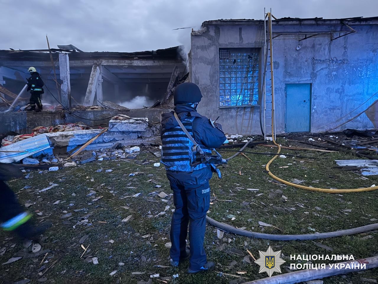 На місцях ударів працюють слідчо-оперативні групи поліції та вибухотехніки. Правоохоронці здійснюють обстеження та документування місць ударів.
