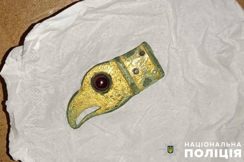 Запобігти продажу археологічних знахідок, що мають виняткову історичну та культурну цінність, вдалось у взаємодії із фахівцями провідного історичного музею країни. Представники закладу на сайті для колекціонерів відслідкували оголошення про продаж рідкісних артефактів — фрагмент браслета та золочене закінчення ременя у вигляді голови хижого птаха із вставкою з гранату.