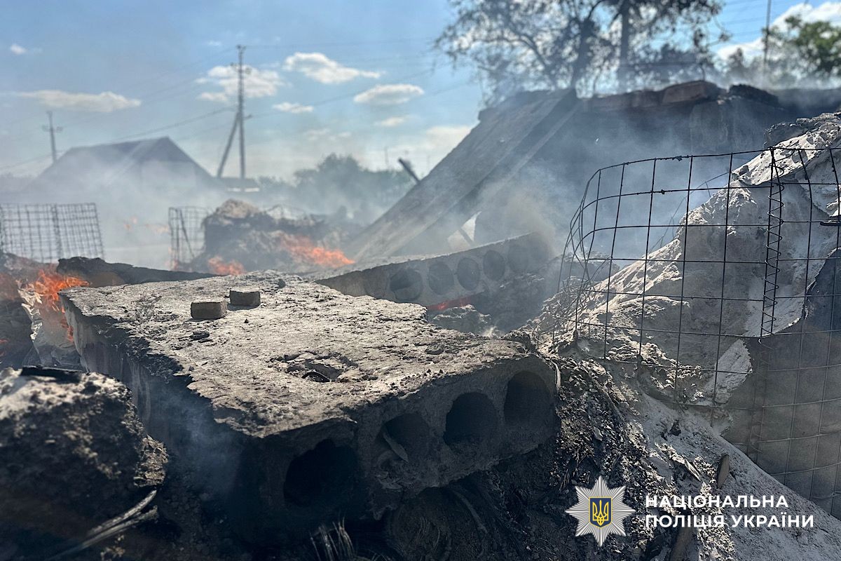 Цього ж дня агресори цілеспрямовано скерували декілька дронів по місцю несення служби поліцейських Нікопольського районного управління поліції - будівля вигоріла вщент. На щастя, ніхто з правоохоронців не постраждав.