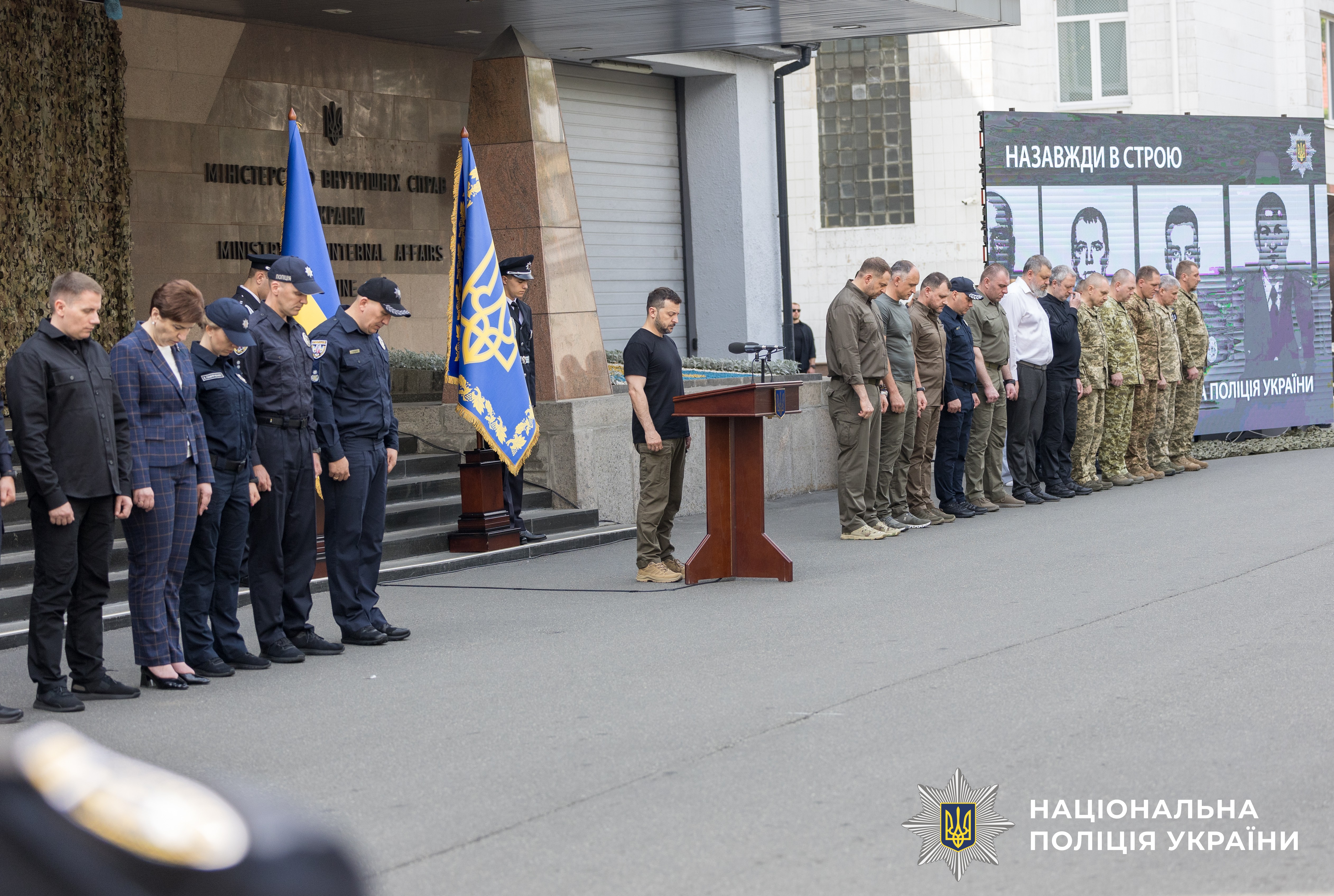 Президент Володимир Зеленський подякував правоохоронцям за їхню сумлінну службу. Він наголосив, що попри війну, Національній поліції вдається втримувати безпекову ситуацію всередині країни та мужньо нести службу разом з іншими підрозділами Сил безпеки й оборони України.