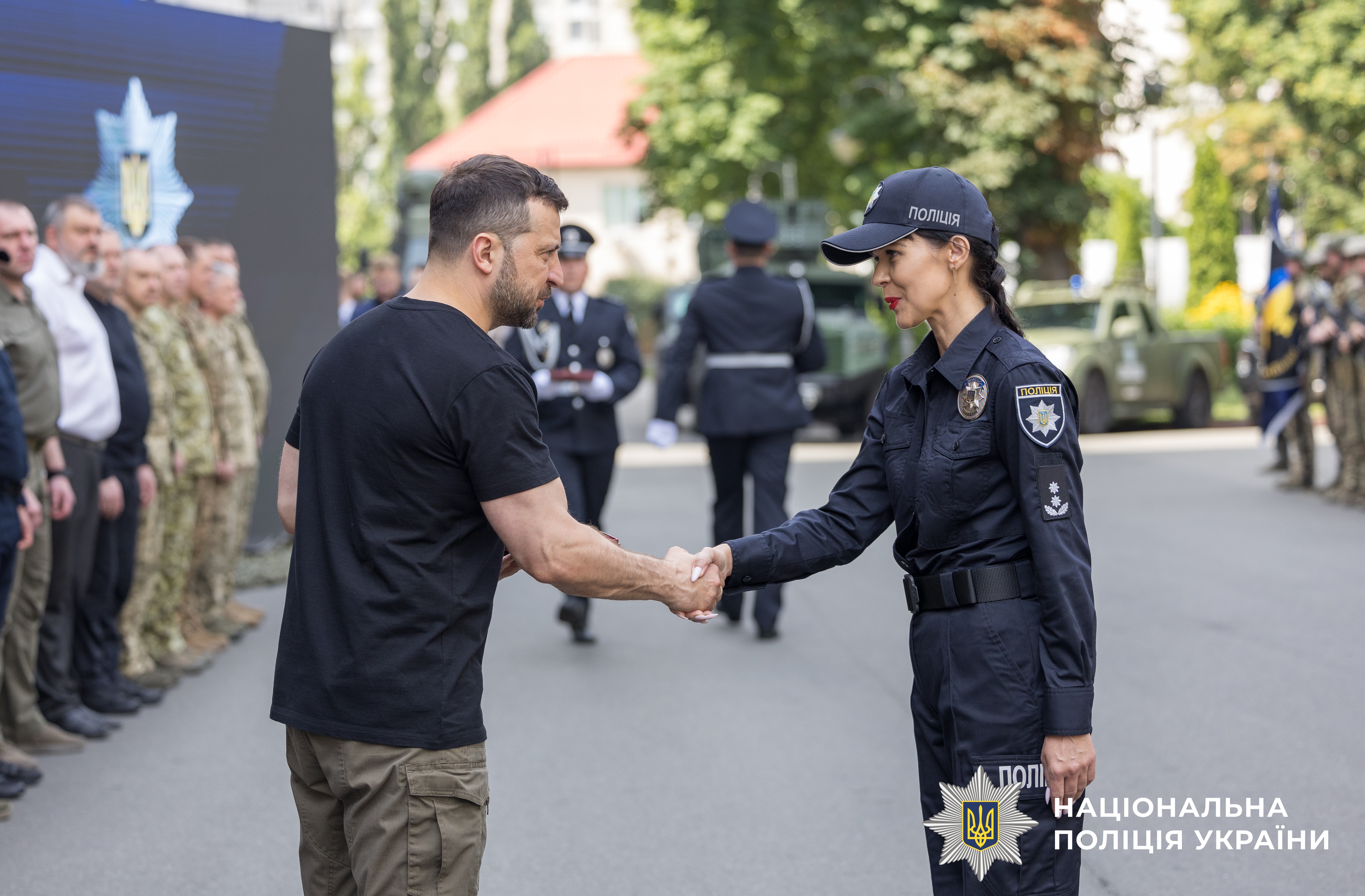 «Національна поліція здійснює евакуацію наших людей із прифронтових міст і сіл та допомагає тим, хто перебуває під російськими обстрілами. Поліцейські завжди прибувають на місця влучань російських ракет і дронів, завжди одними з перших надають допомогу абсолютно всім постраждалим», - сказав Президент.