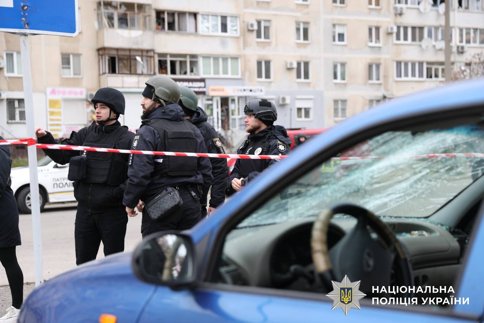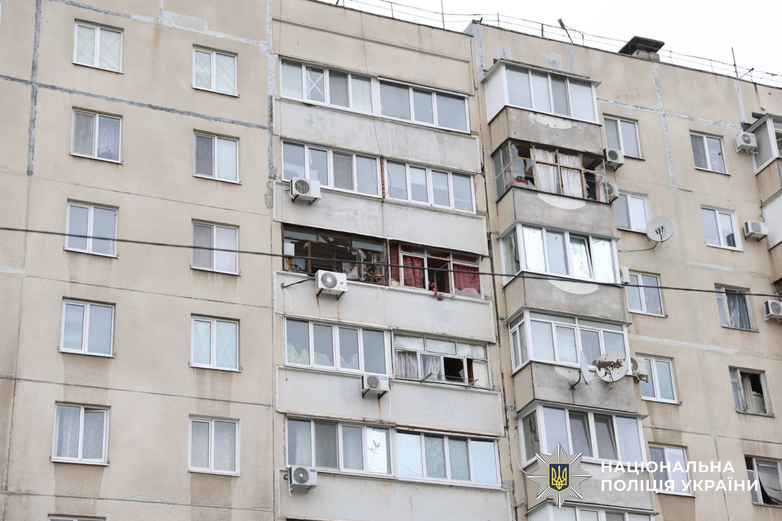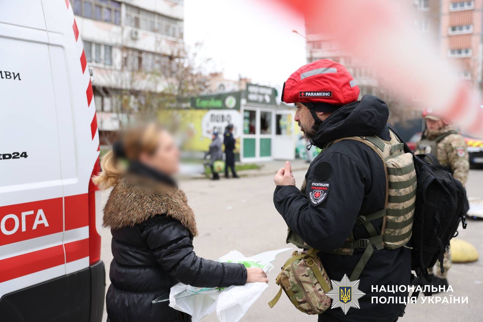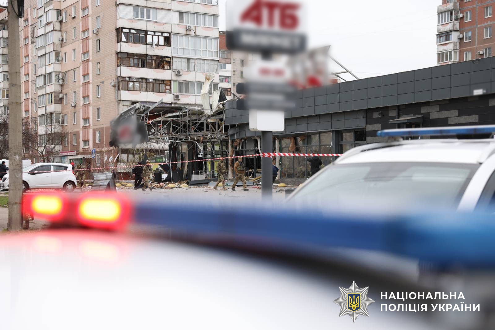 Перший удар росіяни нанесли по житловому району міста. Внаслідок влучання пошкоджено супермаркет та розташовані поруч багатоквартирні будинки. Станом на 12:40 відомо про чотирьох травмованих громадян.