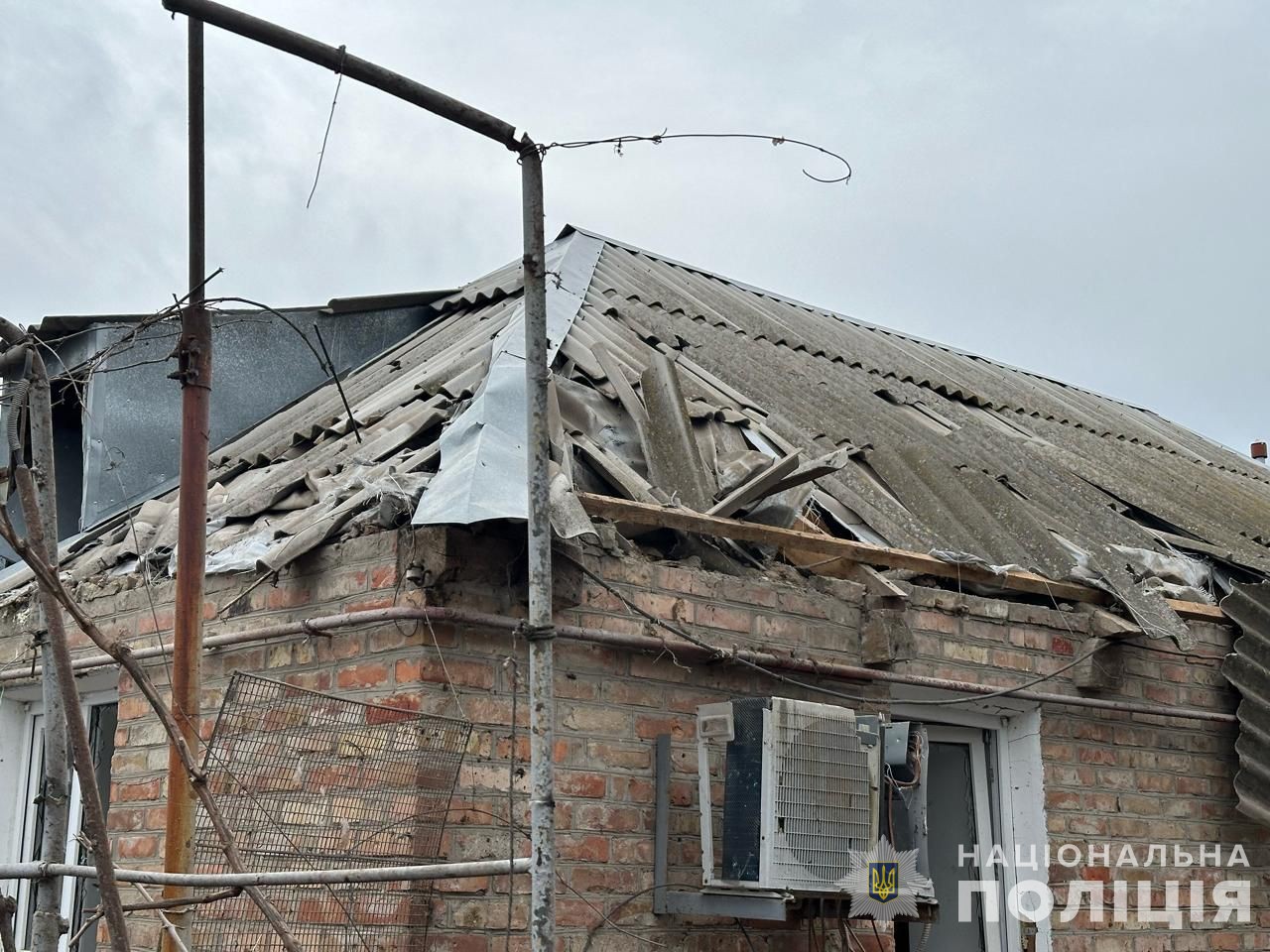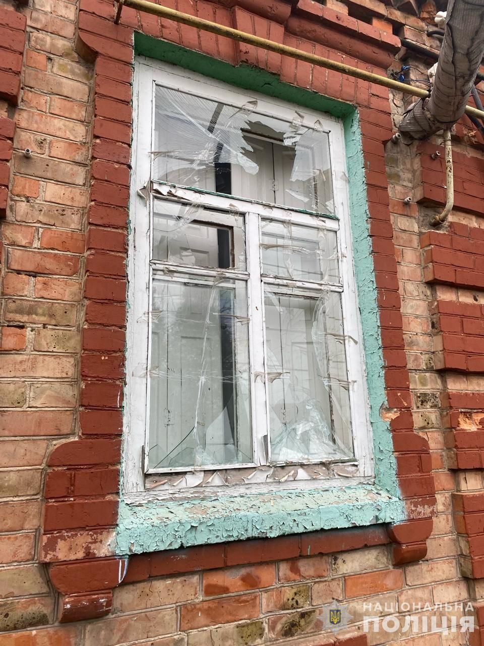 Внаслідок влучань пошкоджені три приватні будинки в районному центрі: понівечено дах, побито фасади та стіни, вилетіло віконне скло.