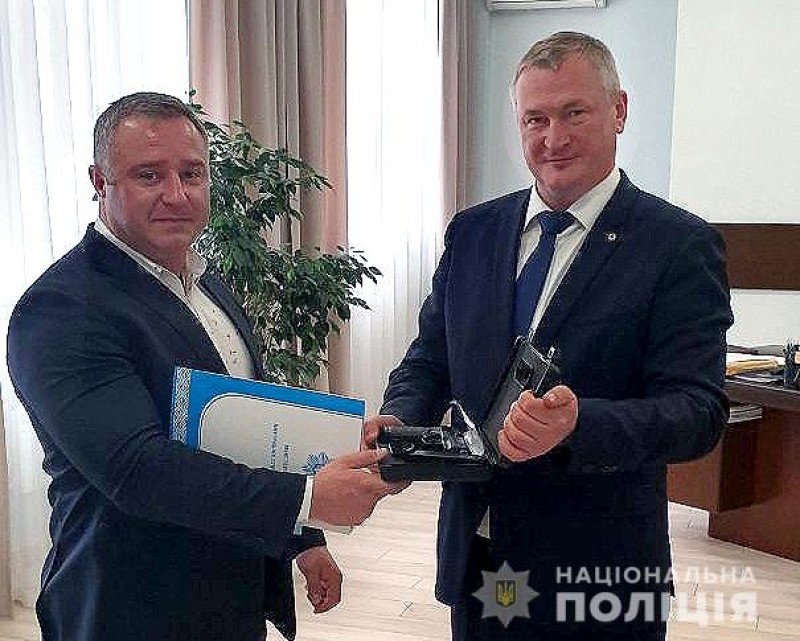 Сьогодні, 6 травня, Голова Національної поліції України Сергій Князєв вручив керівникові поліцейських сил у складі ООС Сергієві Кондрашенкку відомчу відзнаку МВС України «Вогнепальна зброя».