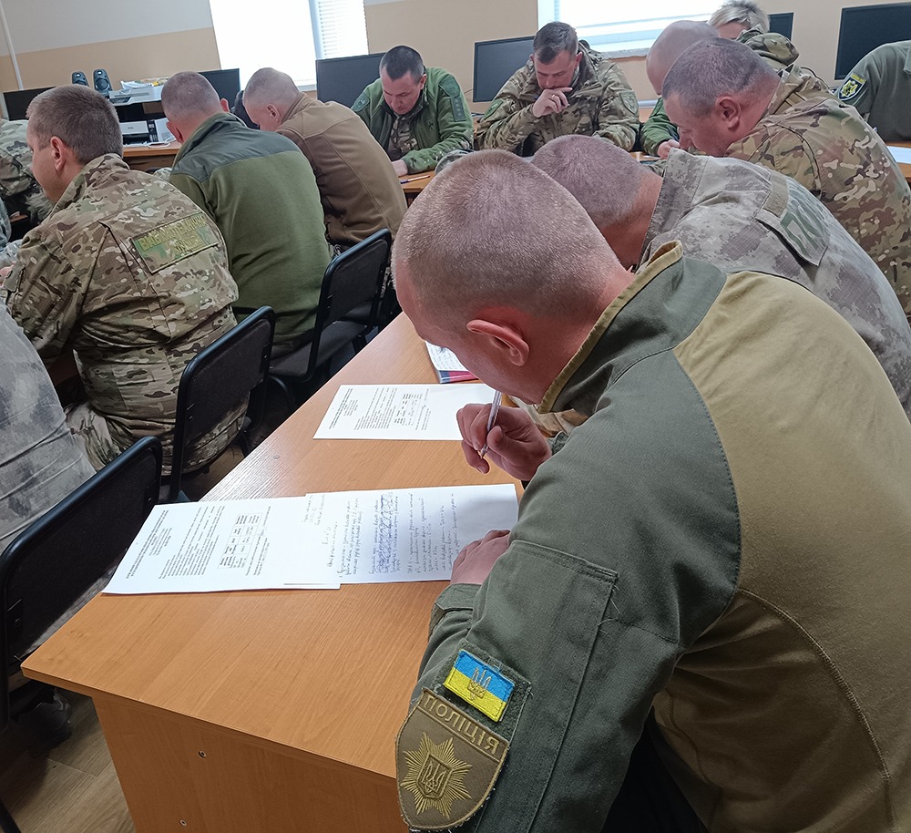 Після освоєння правоохоронцями програми курсу відбувся комплексний іспит, який складався також з теоретичної та практичної частин. Поліцейські сапери демонстрували набуті знання під час вирішення ситуацій, пов’язаних з розмінуванням території.