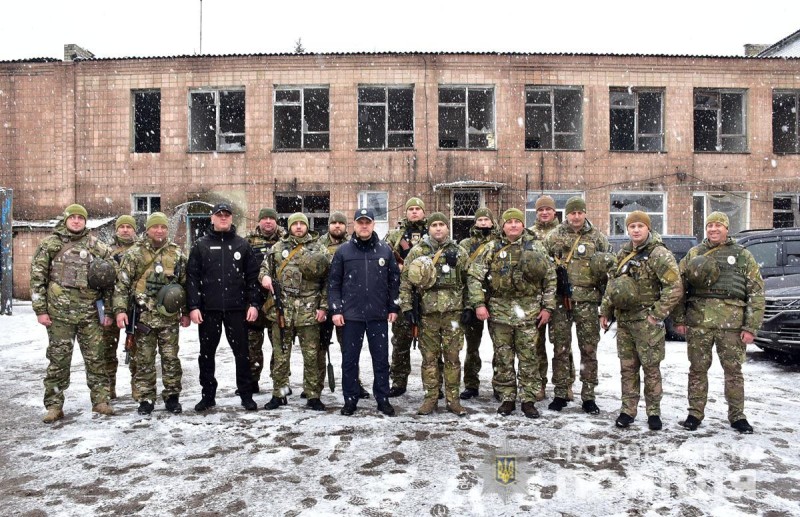 Сьогодні, 17 грудня, під час робочого візиту на Донеччину Голова Нацполіції відвідав поліцейських у місцях дислокації в прифронтовій Мар’їнці. У складі Об’єднаних сил вони виконують завдання з охорони публічного порядку та стримування збройної агресії РФ.