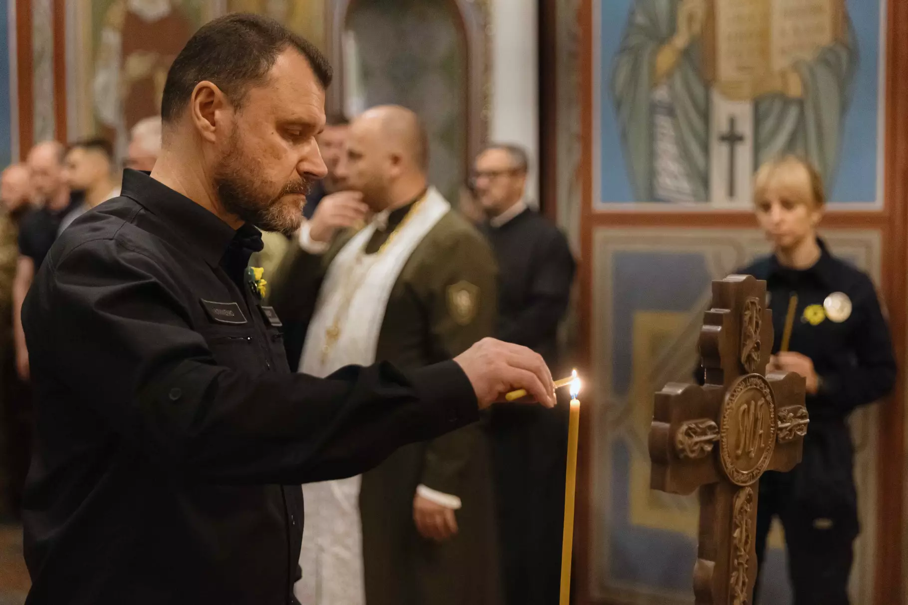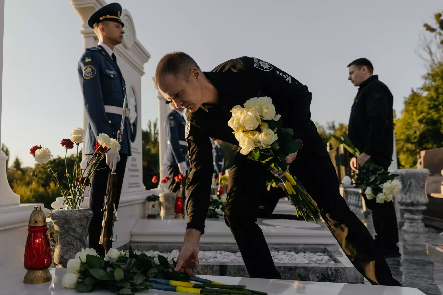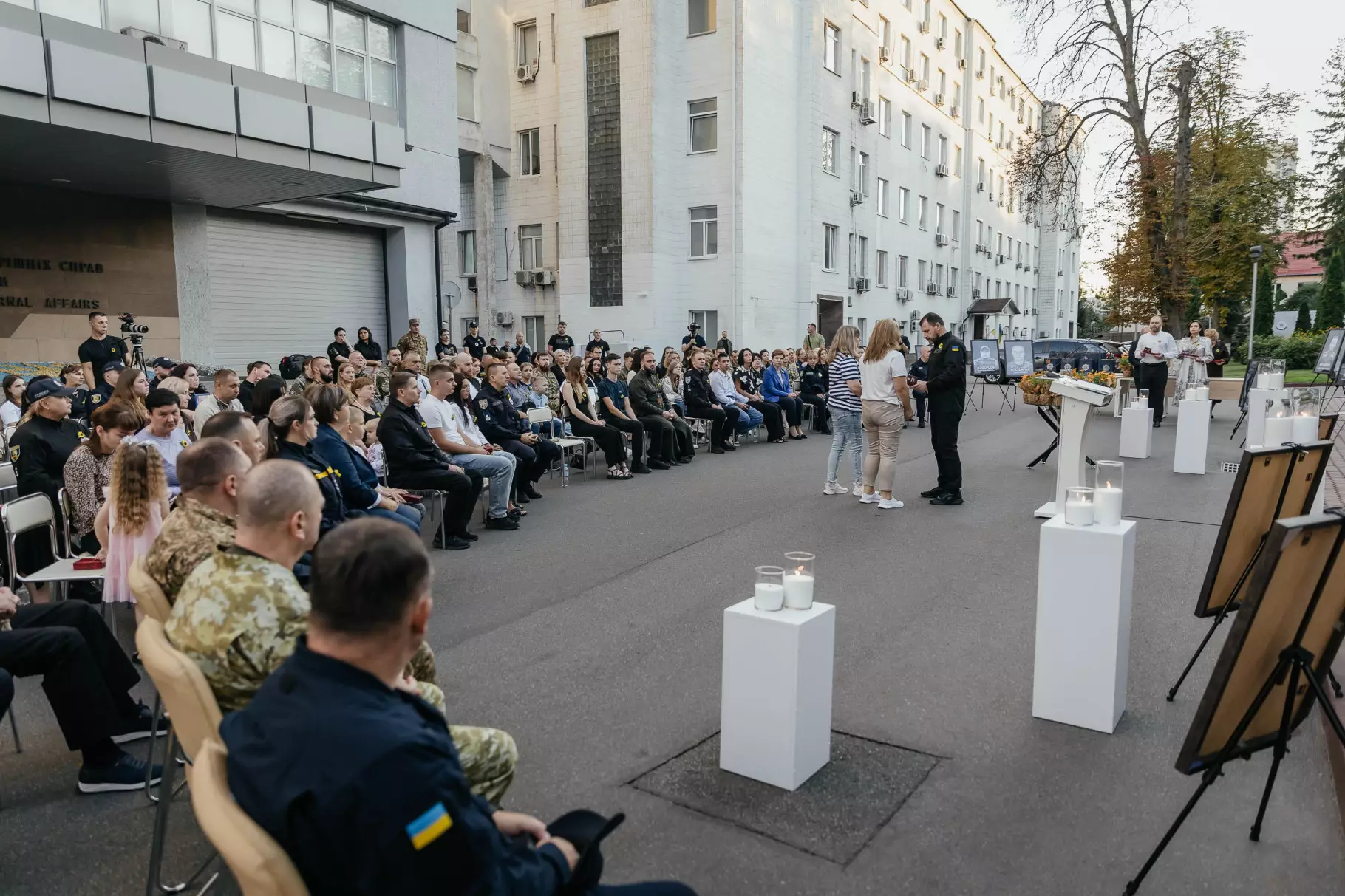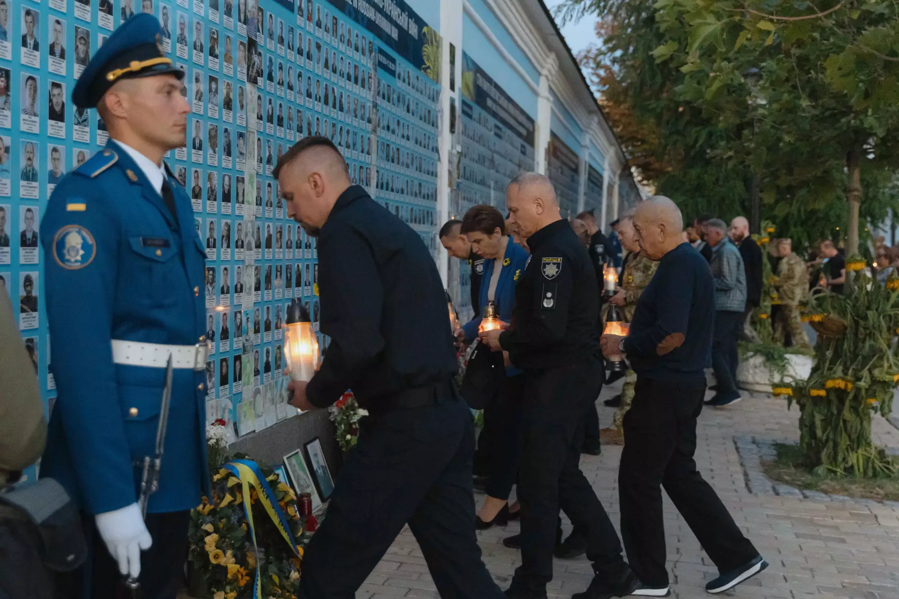 Після заходу на території Міністерства внутрішніх справ рідні Героїв вшанували пам’ять загиблих військових, рятувальників та поліцейських біля Стіни пам'яті на Михайлівській площі Києва. У Михайлівському Золотоверхому соборі митрополит Епіфаній звершив панахиду за загиблими працівниками органів та підрозділів МВС.