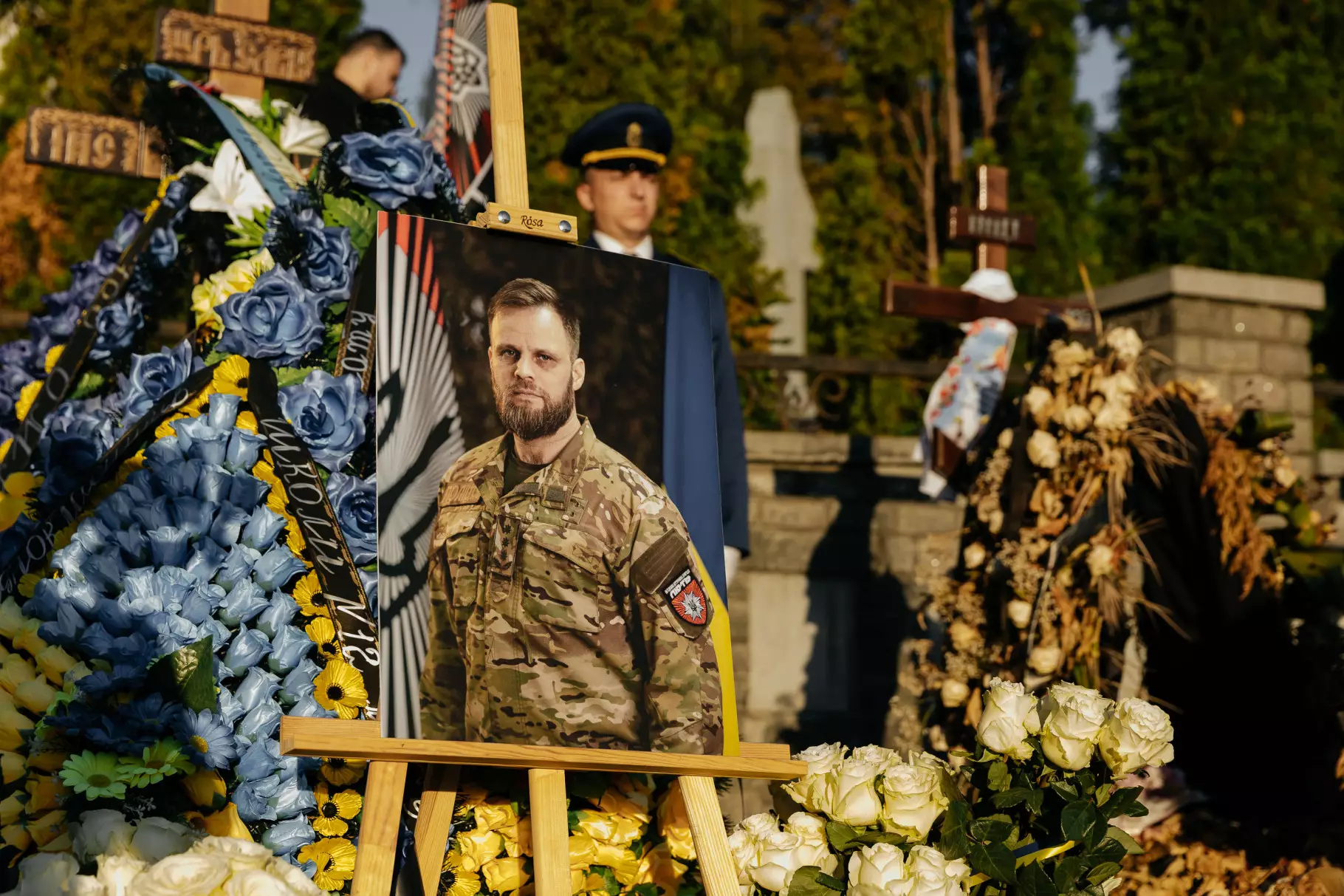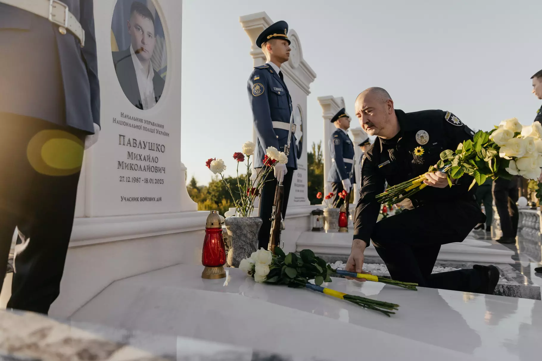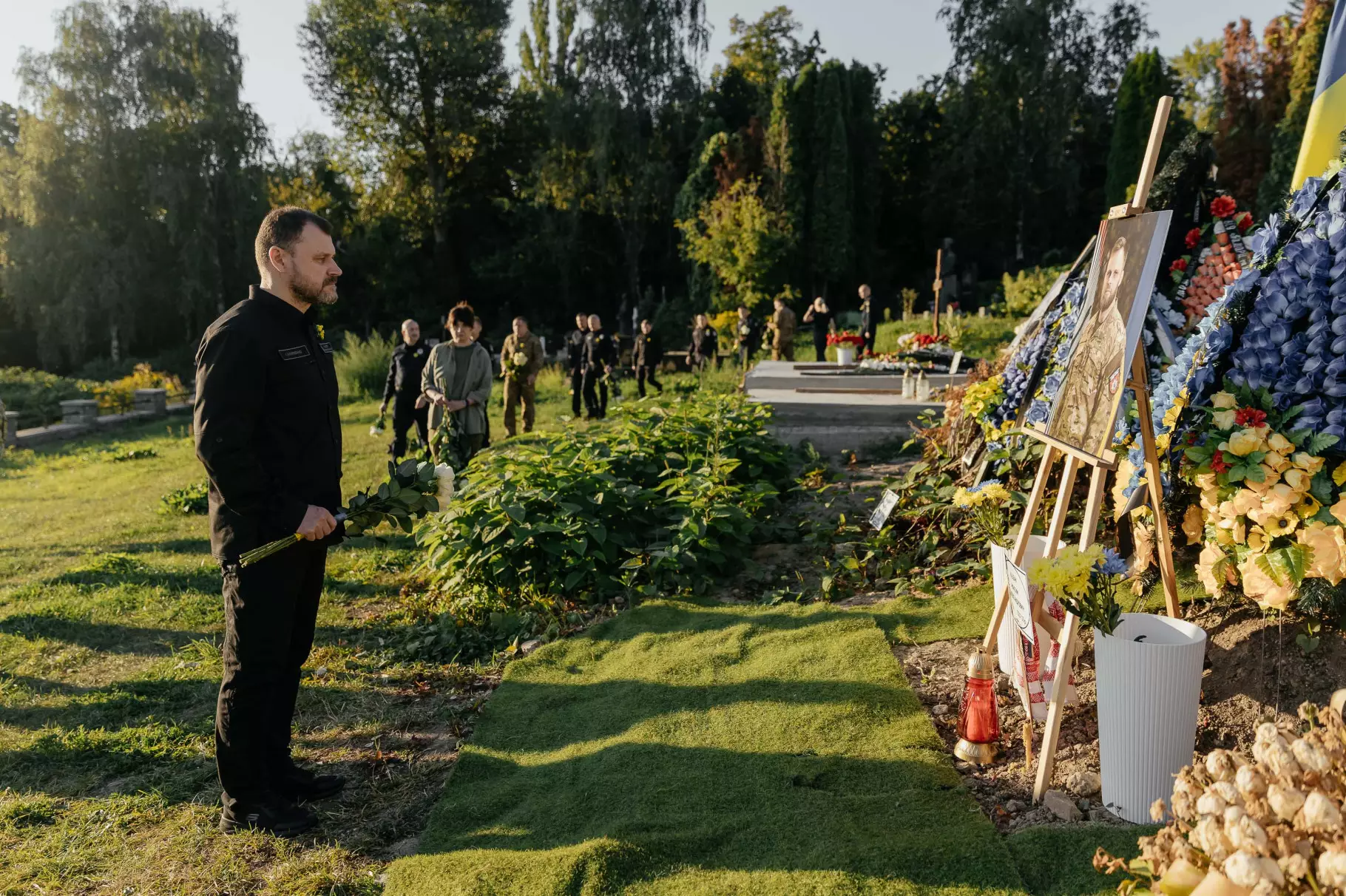 Після цього учасники церемонії поклали квіти до могили Максима Казбана – командира Об'єднаної штурмової бригади Національної поліції України «Лють», який загинув у липні 2025 року на Донеччині.