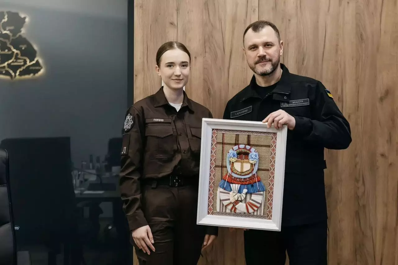 «Ця картина символізує щасливу долю. Ми хочемо подарувати її вам від усіх вихованців ліцеїв безпекового спрямування та національно-патріотичного виховання і подякувати вам і усім вашим колегам за створення цих навчальних закладів».