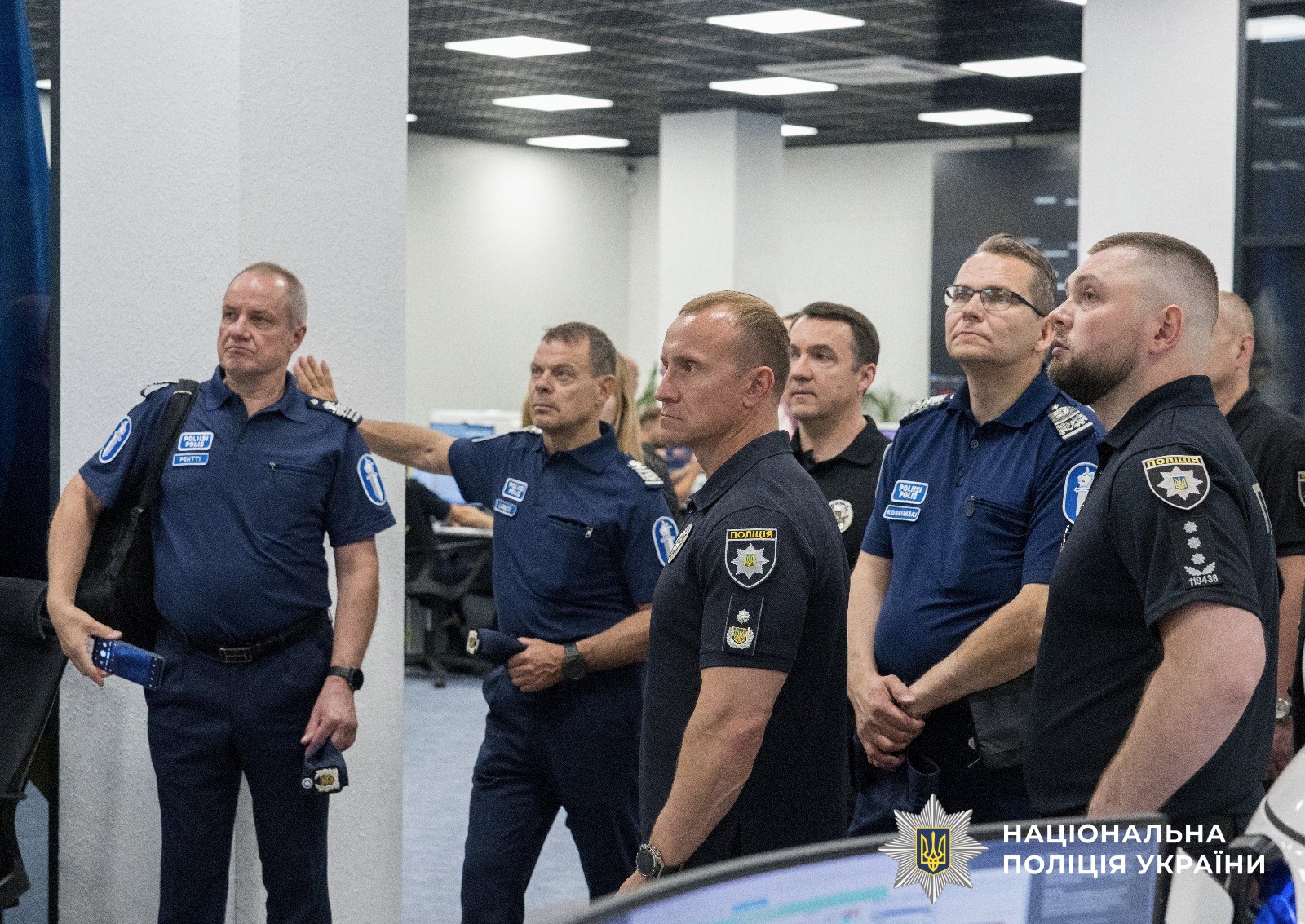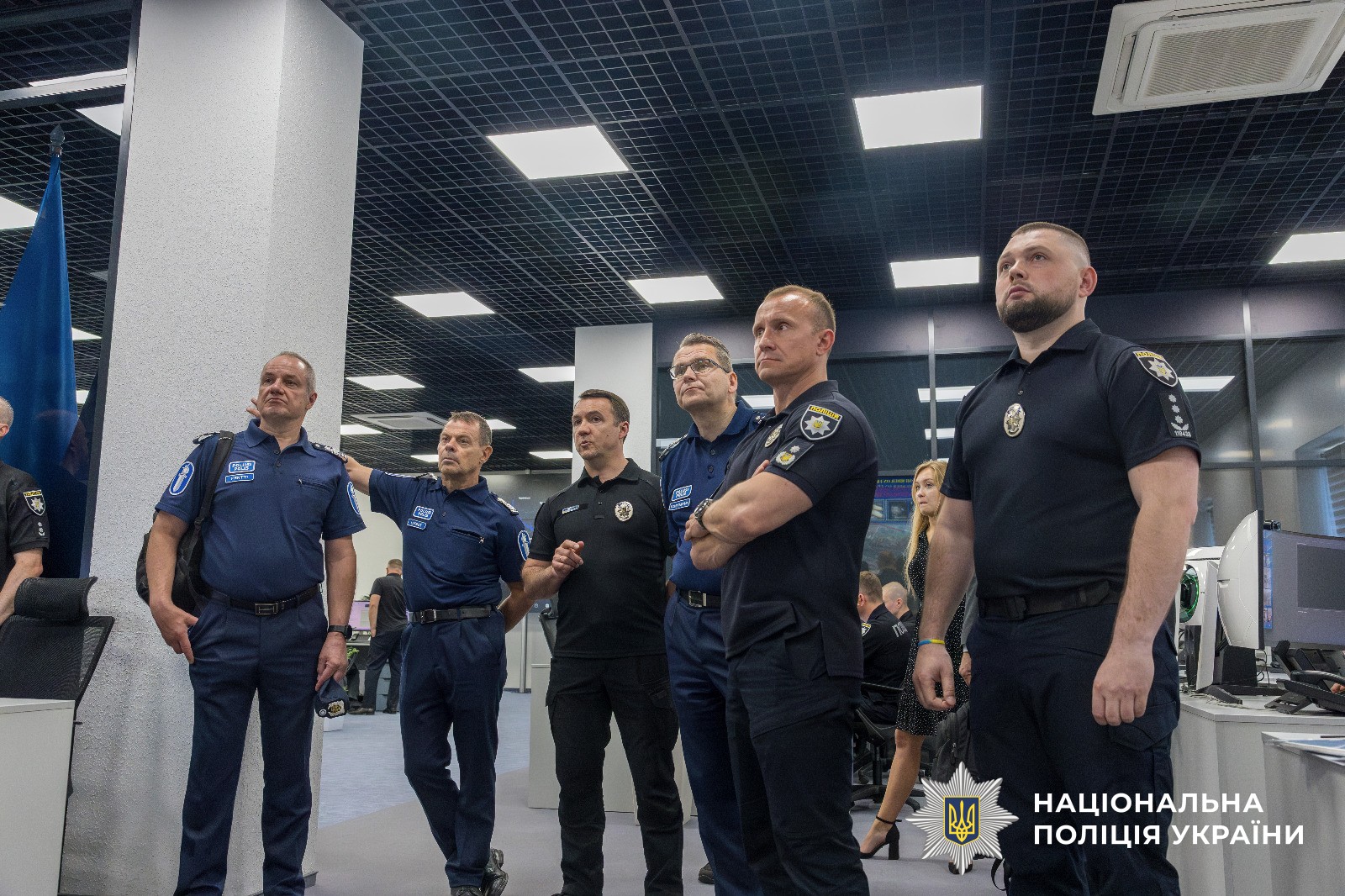 Together with the Deputy Head of the National Police Andrii Niebytov, the foreign colleagues also visited the Situation Center of the Ministry of Internal Affairs of Ukraine. They saw how all operational units work in a coordinated and synchronized manner around the clock and how actions are coordinated. International partners were interested to learn about new practices and experience of Ukrainian law enforcement during the war.