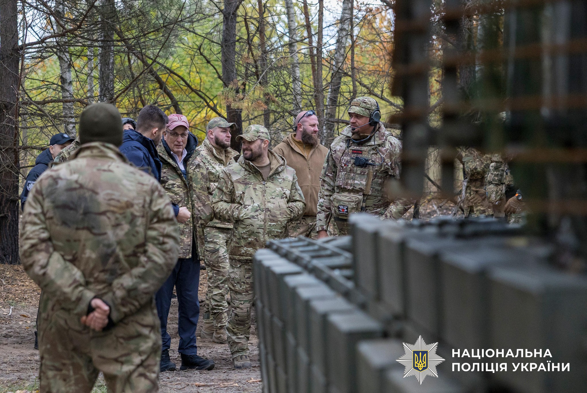 Разом із тим, поліцейські продемонстрували іноземним партнерам лінію дронів DJI, Аutel, SkyDio. Детально зупинилися на  власних розробках FPV-дронів, в тому числі на оптоволокні та розповіли як їх використовують. Серед них - дрон-перехоплювач «Бомбер», який може нести від одного до шести снарядів, вагою 15 кілограмів на відстань 15 кілометрів.