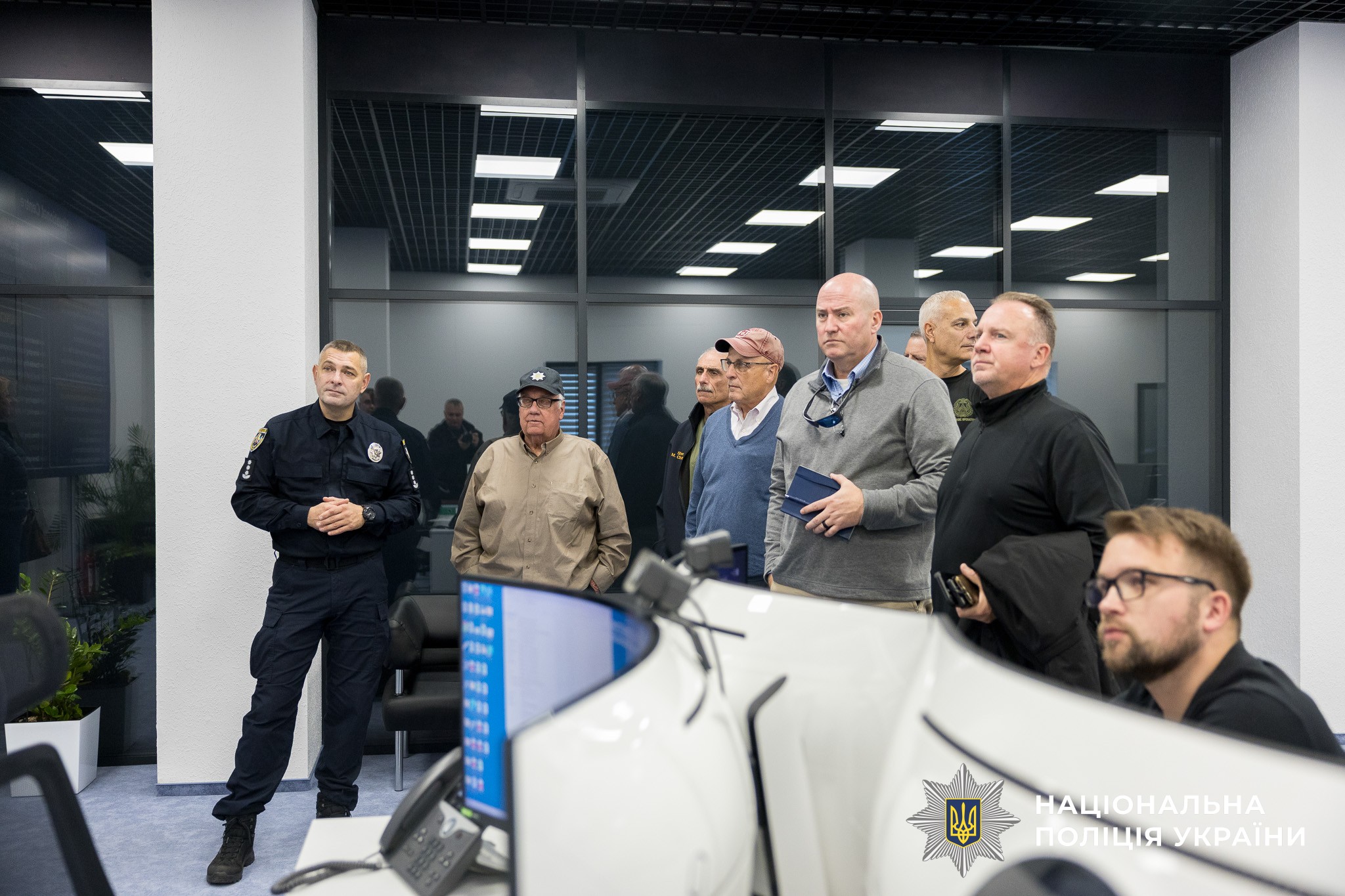Також  партнерів ознайомили з роботою Ситуаційного центру МВС України. Керівник Департаменту кримінального аналізу Роман Бутко розповів про роботу поліцейських аналітиків під час розкриття воєнних злочинів та ідентифікації воєнних злочинців за наявними фото відеофіксації. Разом з тим, делегація відвідала та ознайомилася з роботою Національного координаційного центру з питань вогнепальної зброї (NFFP).