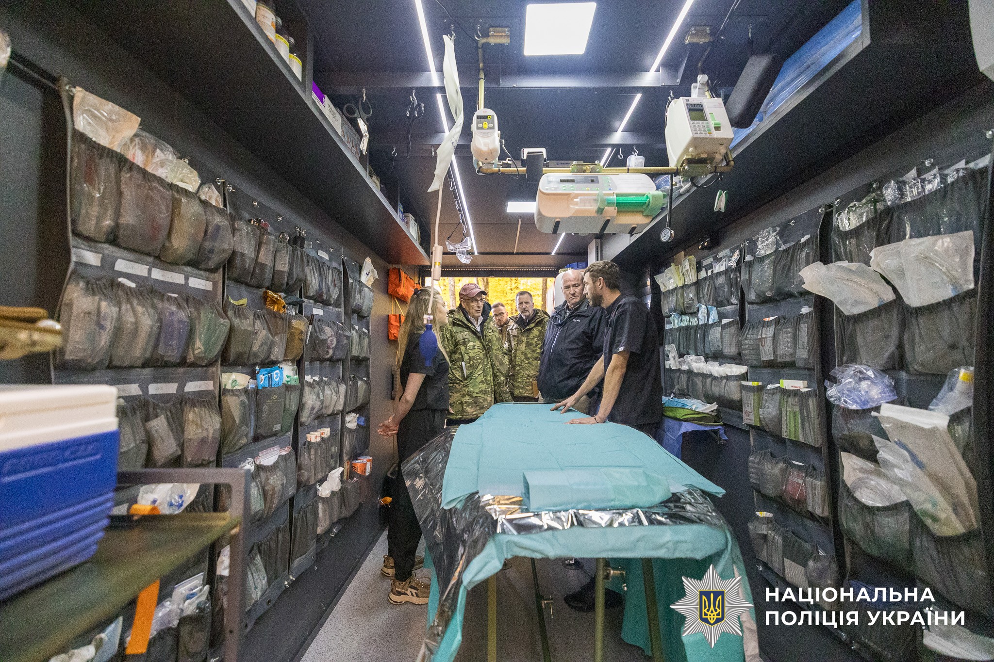 На одній із локацій іноземні колеги оглянули медичне обладнання, яке використовують бойові медики для порятунку життя побратимів на полі бою. Зокрема, їм продемонстрували роботу медичного батальйону -  від медевакуації бійця до стабілізації стану, реанімаційні дії та роботу лікарів-хірургів. Це нова модель підземного стабілізаційного пункту, де працюють лікарі-хірурги, так званий підземний шпиталь, який можна занурювати під землю на декілька метрів. Він обладнаний сучасним обладнанням для надання медичної допомоги пораненим поблизу лінії фронту та навіть дозволяє проводити операції.