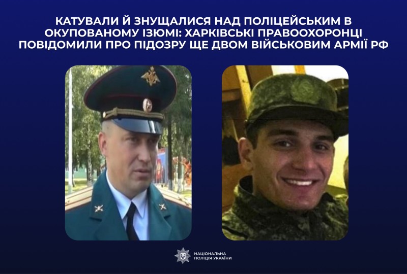 Підозру отримав командир та військовослужбовець 27-ї окремої мотострілецької бригади 1 танкової армії Західного воєнного округу збройних сил рф. Саме цей підрозділ брав участь в окупації міста Ізюм на Харківщині у 2022 році. Щоб отримати від поліцейського інформацію про місця дислокацій військовослужбовців ЗСУ, правоохоронців та учасників АТО, російські військові ламали українському поліцейському кістки й пускали електричний струм тілом.