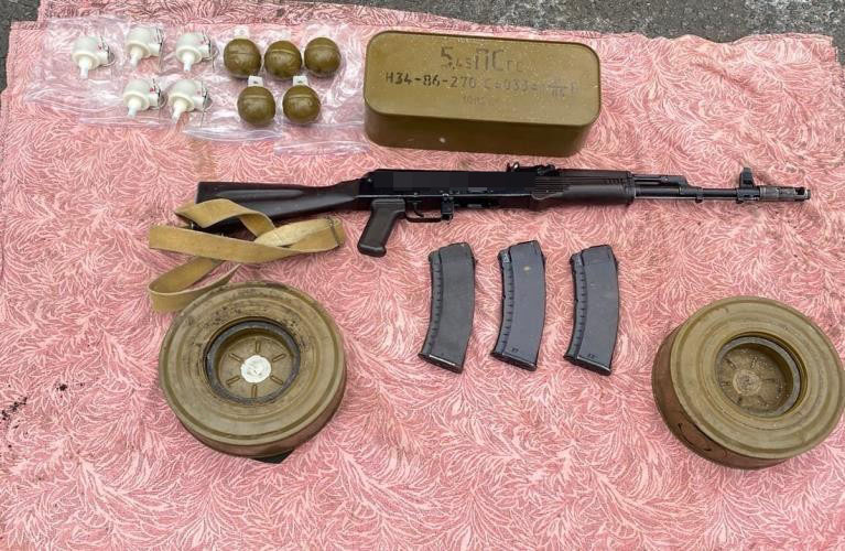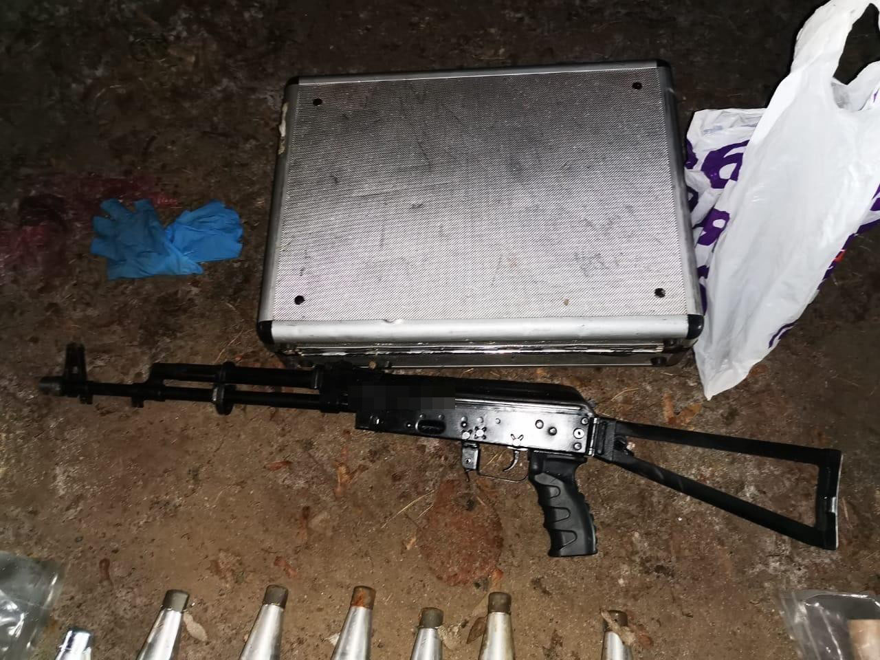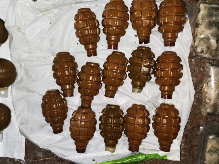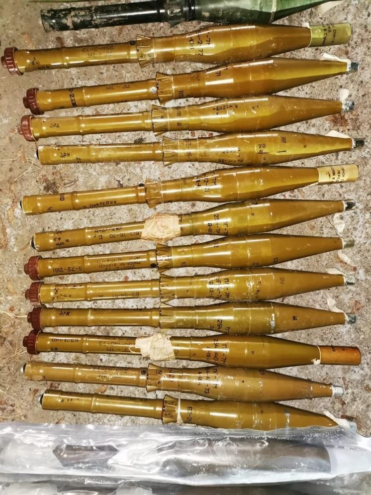 Загалом у фігуранта вилучено два автомати, близько 30 гранат, пристрій для безшумної стрільби, більше 3,7 тисячі набоїв, майже 5 кг тротилу, 3 ручних гранатомети, пістолет, димові шашки, більше 60 акумулятивних реактивних снарядів різного типу, 4 окопні снаряди та 12 стартових порохових зарядів до ручних гранатометів.