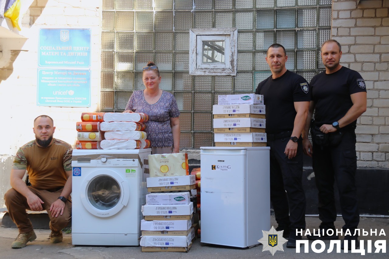 Працівники Управління головної інспекції поліції Херсонщини спільно з ювеналами передали до центру матері та дитини обласного центру благодійну допомогу, зібрану колегами з Чернівецької області спільно з громадською організацією «Справа Кольпінга в Україні» та громадським формуванням «Безпека Руху».