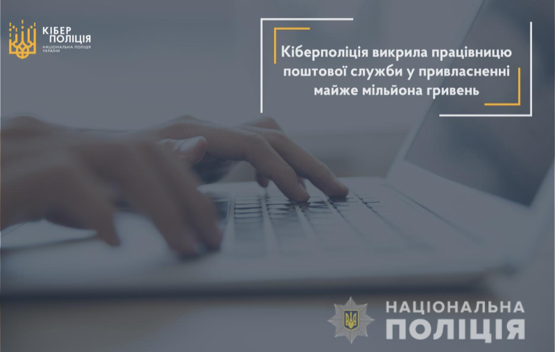 Кіберполіція викрила працівницю поштової служби у привласненні майже мільйона гривень