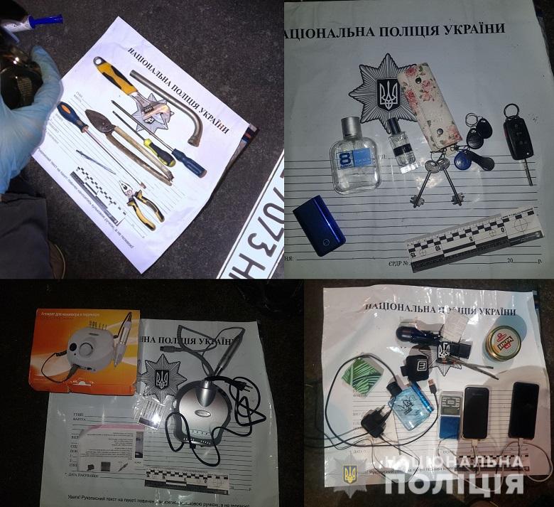 «Завдяки злагодженій роботі патрульних та спецпризначенців фігурантів затримано упродовж години після вчинення ними чергової крадіжки у Святошинському районі Києва. Під час невідкладного обшуку в автомобілях підозрюваних та за їх місцем мешкання слідчі вилучили інструменти вчинення злочину та викрадені речі потерпілих - мобільні телефони, гроші, прикраси, парфуми та різноманітну техніку».