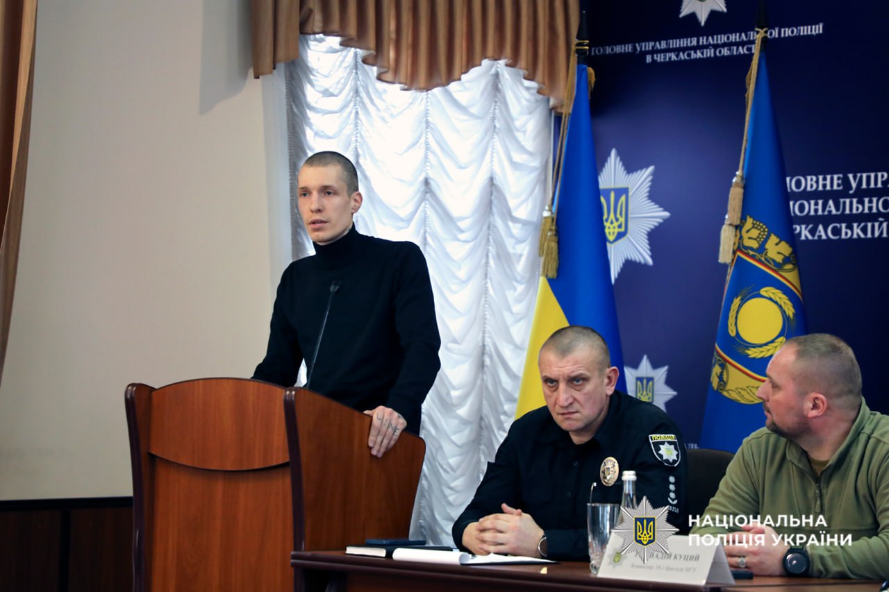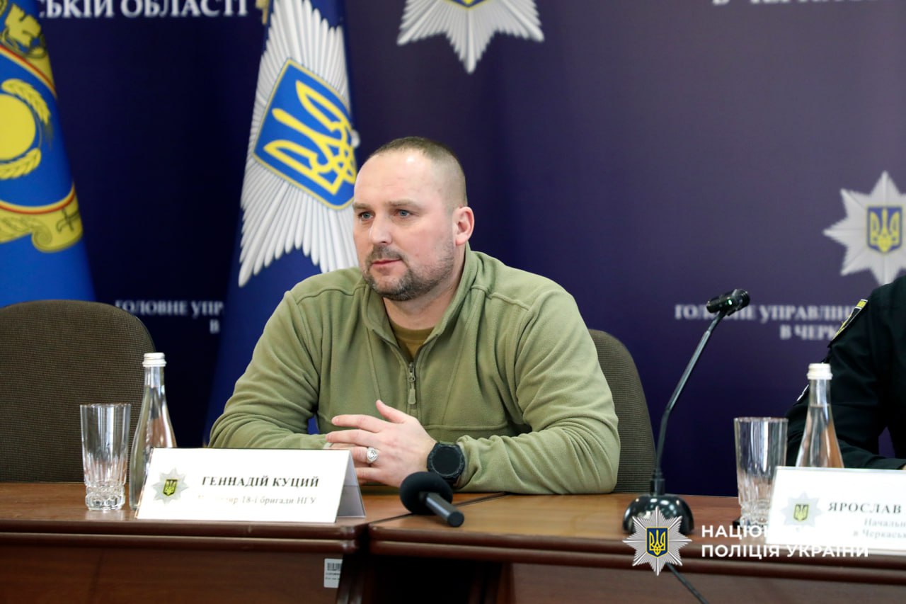До Головного управління Національної поліції в Черкаській області завітали бойові командири: Геннадій Куций – полковник Національної гвардії України, учасник російсько-української війни, командир 18-ї бригади НГУ, Герой України (2025), Олег Гуйт – полковник Збройних сил України, учасник російсько-української війни, командир 427-ї окремої бригади безпілотних систем “Рарог”, Герой України (2026), Дмитро Олексюк – полковник Державної прикордонної служби України, учасник російсько-української війни, що відзначився в ході російського вторгнення в Україну, Герой України (2024) та Анатолій Куликівський – полковник Сухопутних військ Збройних Сил України, учасник російсько-української війни, командир 28 окремої механізованої бригади імені Лицарів Зимового Походу.