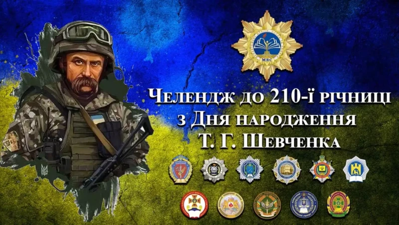 До 210-річниці від дня народження Великого Кобзаря курсанти вищих навчальних закладів системи МВС взяли участь у челенджі прочитання відомих рядків Шевченка.