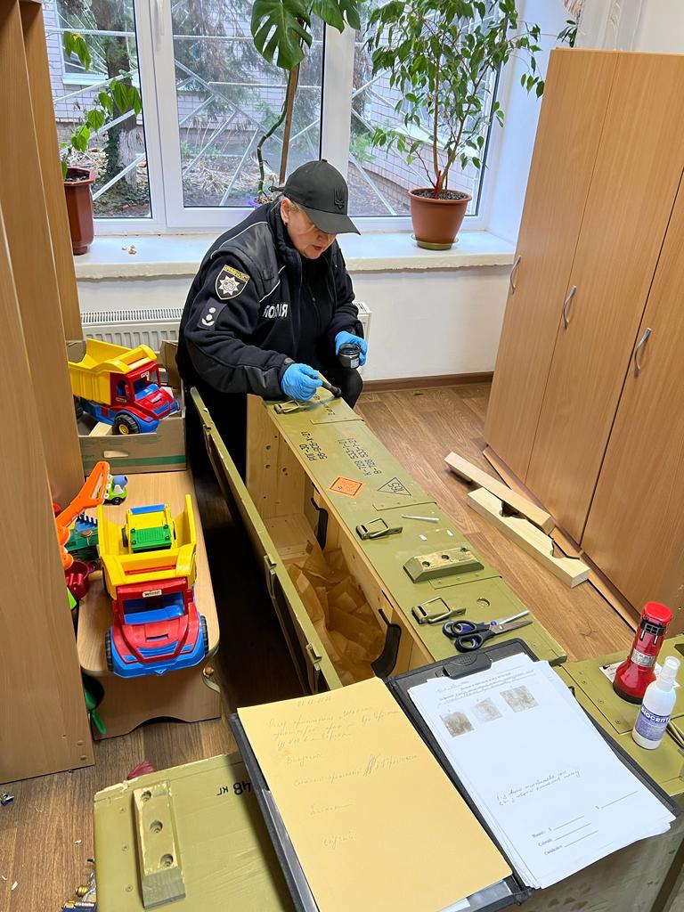 Начальник відділу криміналістичного забезпечення слідчого управління Головного управління Національної поліції підполковник поліції Людмила Тростогон фіксує сліди злочинів, вчинених російськими військовими на звільнених від окупанта територіях України.