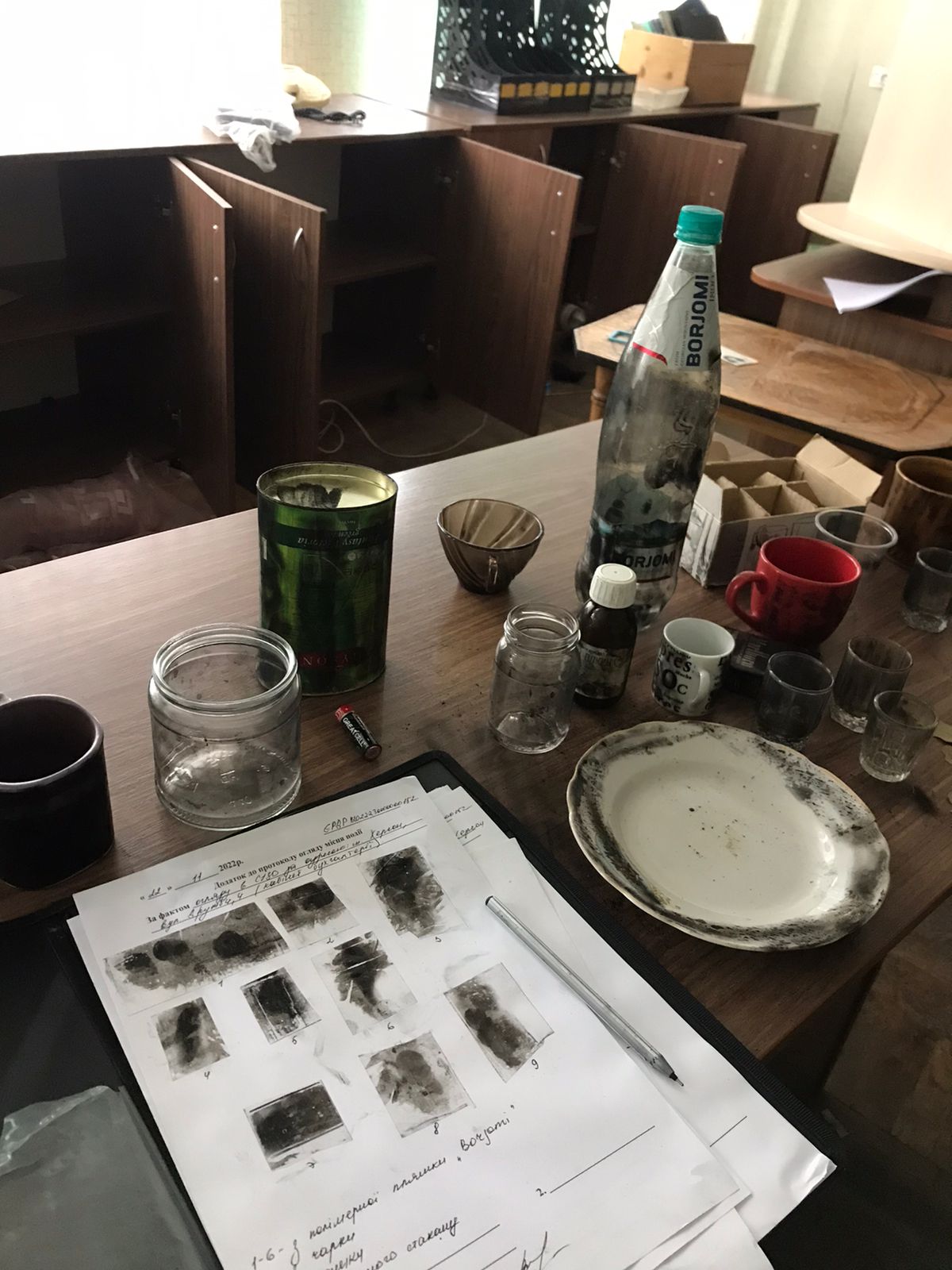 Криміналісти оглядають будинки і подвір’я місцевих мешканців, в яких росіяни мародерили, вбивали та катували. За допомогою дактилоскопічних порошків обробляють побутові речі та вилучають відбитки, що залишили окупанти. Зібрані докази будуть внесені в базу і свідчитимуть про їхнє перебування на території України.