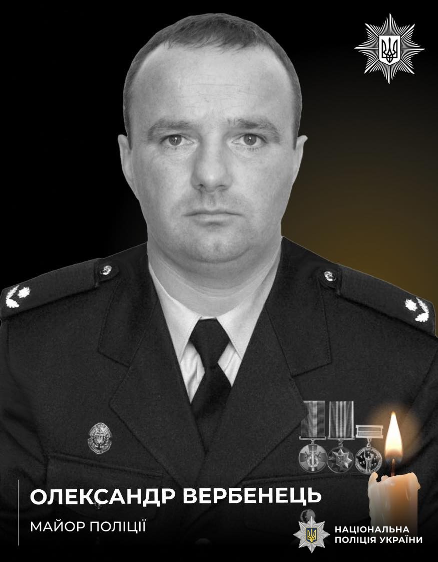 Майор поліції Олександр Вербенець отримав смертельні поранення 26 березня під час виконання бойового завдання у Краматорському районі на Донеччині внаслідок ураження ворожим дроном. Тіло Олександра з поля бою евакуювали побратими.