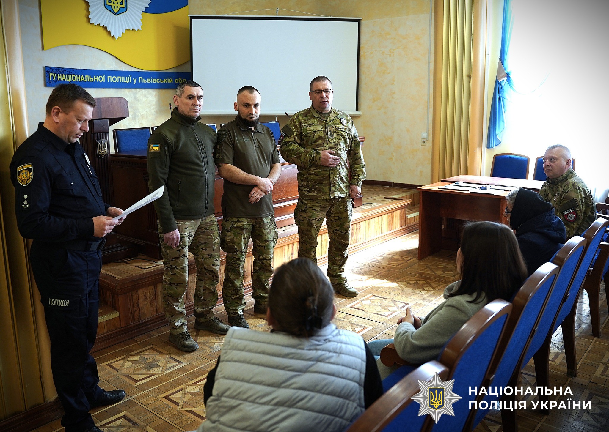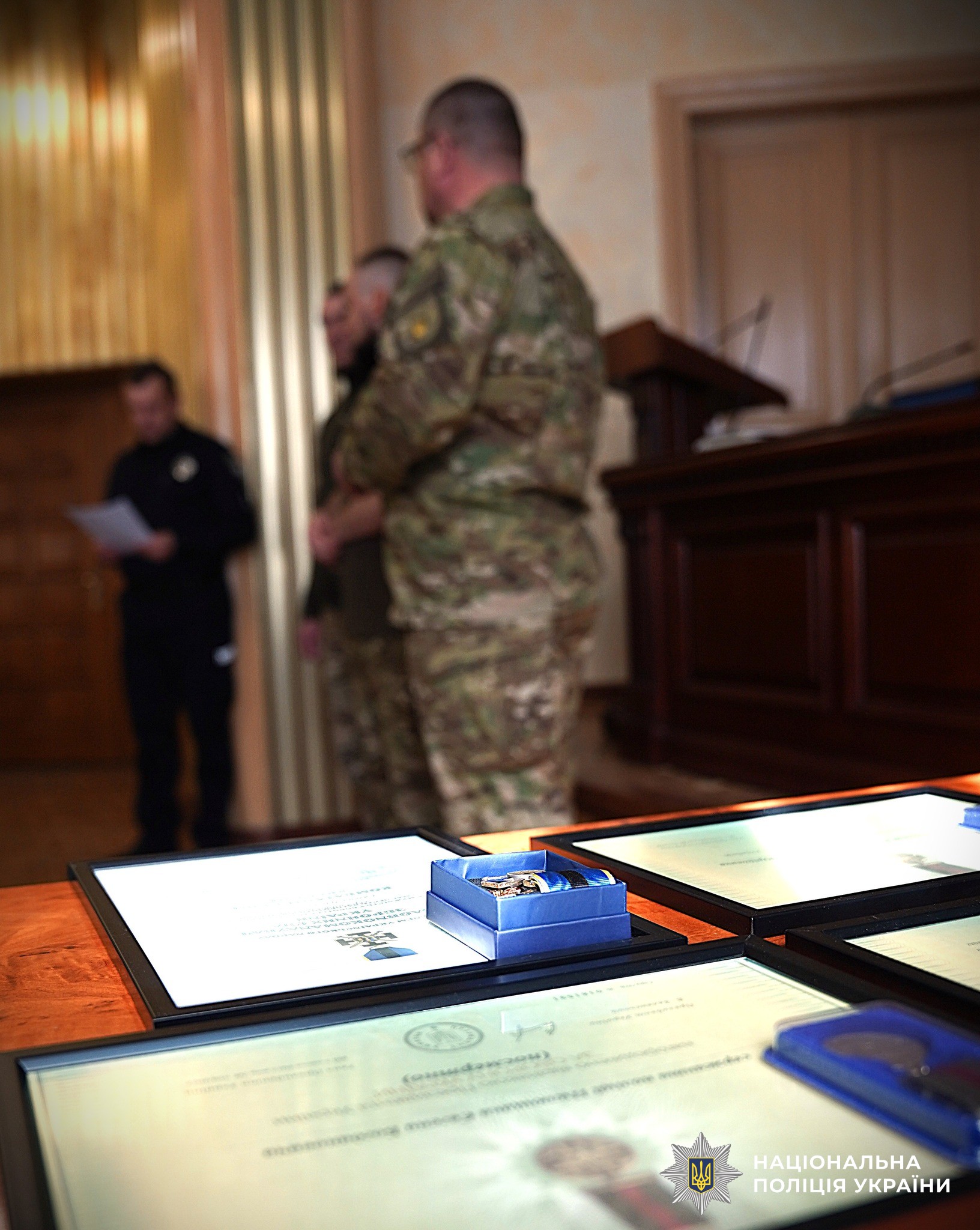 Церемонія вручення нагород відбулась сьогодні, 24 березня, у Головному управлінні Національної поліції у Львівській області. Відзнаки вручали помічник начальника Департаменту поліції особливого призначення «Об’єднана штурмова бригади Національної поліції України «Лють» підполковник поліції Вячеслав Вусінський, помічник начальника Головного управління Національної поліції у Львівській області капітан поліції Володимир Федьків та провідний консультант очільника поліції Львівщини з питань ветеранської політики Василь Іванович.