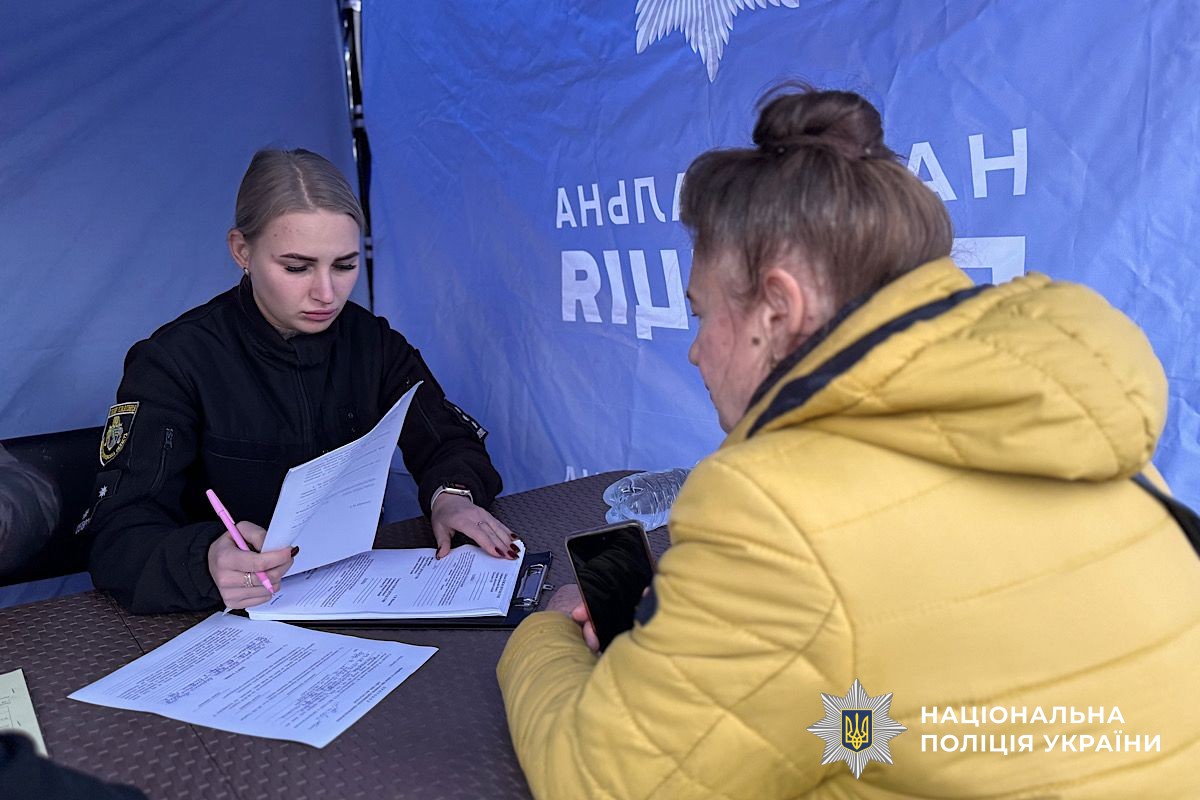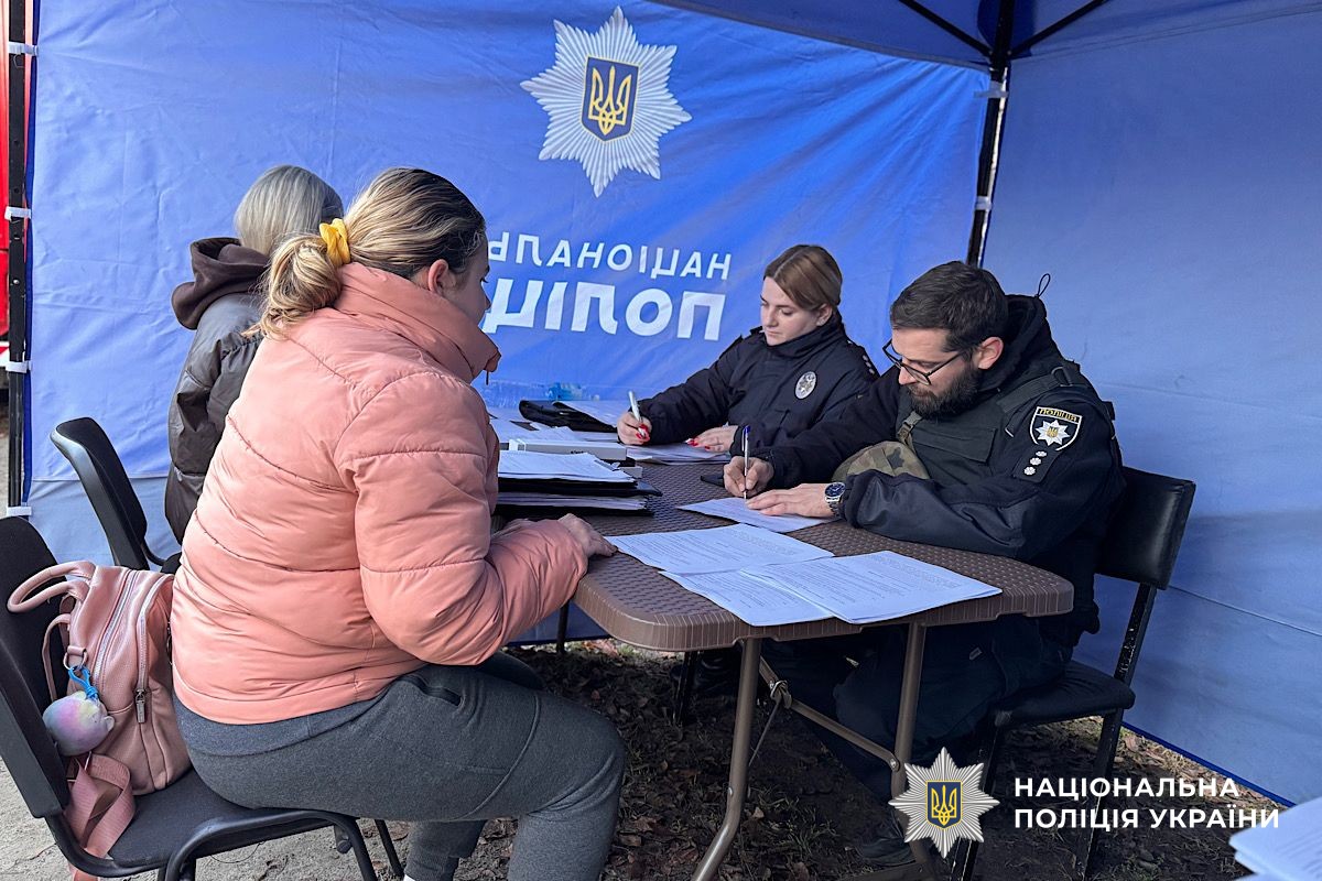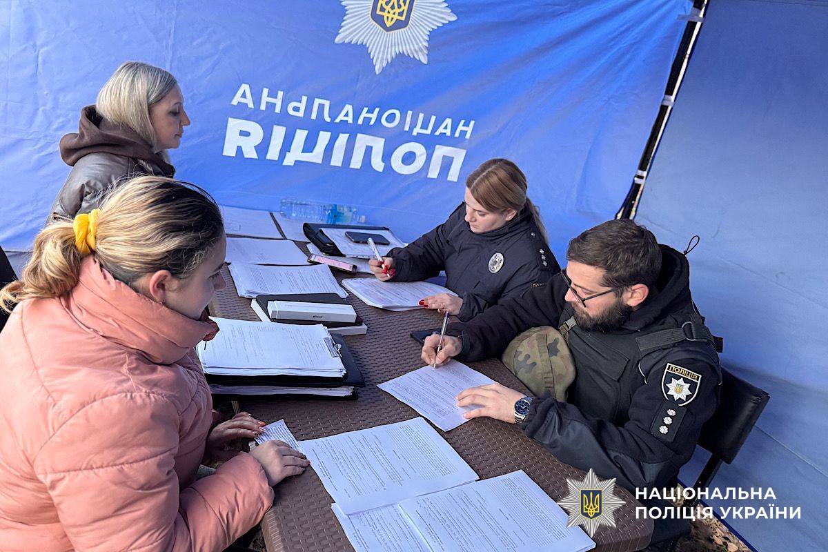 Правоохоронці розгорнули мобільний пункт для прийому звернень громадян, які постраждали від чергового обстрілу. Поліцейські опитують людей, фіксують руйнування та надають всебічну допомогу мешканцям. Слідчі документують наслідки ворожої атаки.