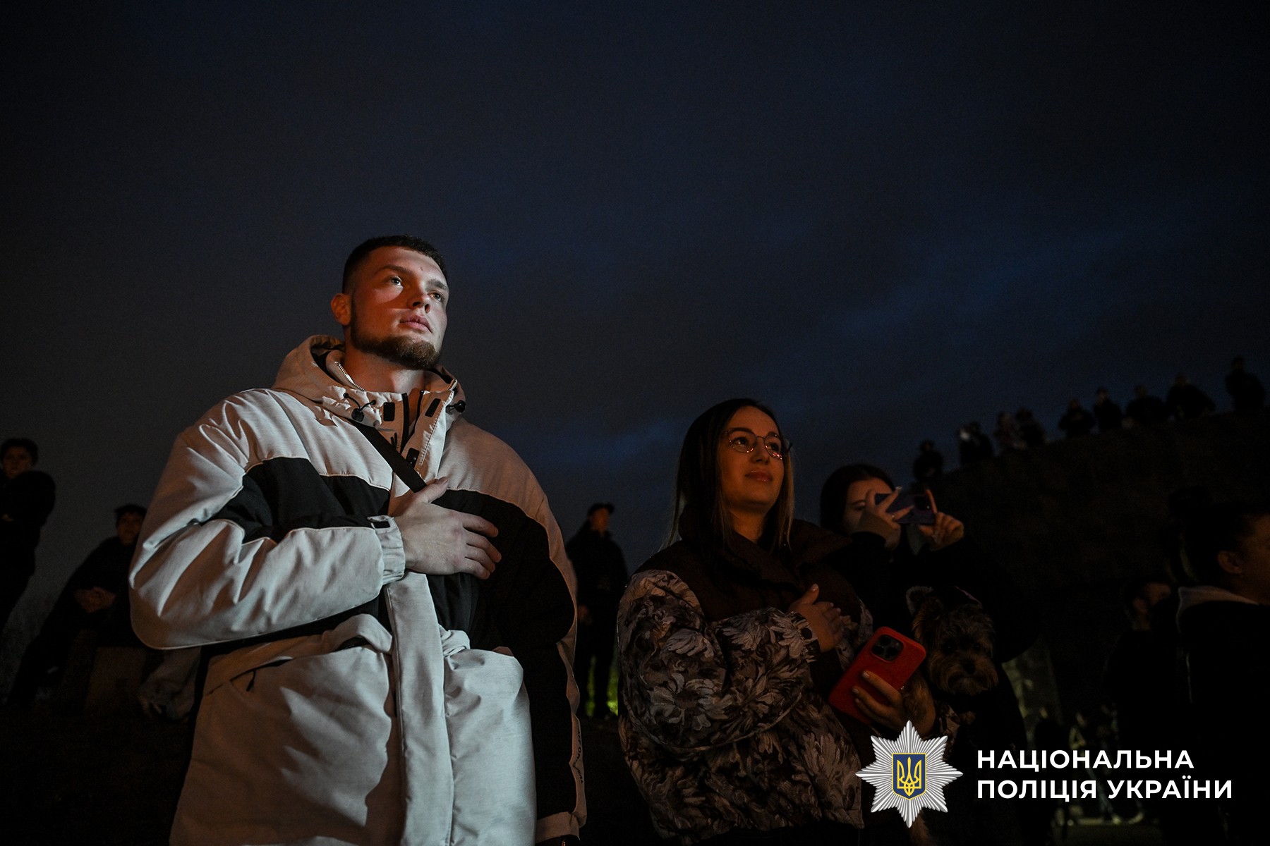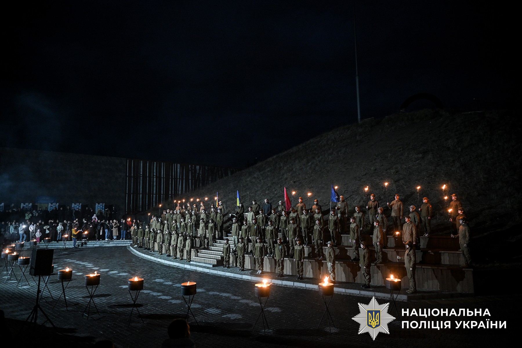 Захід розпочався із перегляду світлової інсталяції на пагорбі «Єдності», яка вразила своєю красою та історичною значущістю. Глядачі поринули в атмосферу козацької слави, а звуки тулумбасів налаштували присутніх на урочисту частину заходу. Після хвилини мовчання, присвяченої героям, які віддали свої життя за незалежність України, розпочалася посвята.