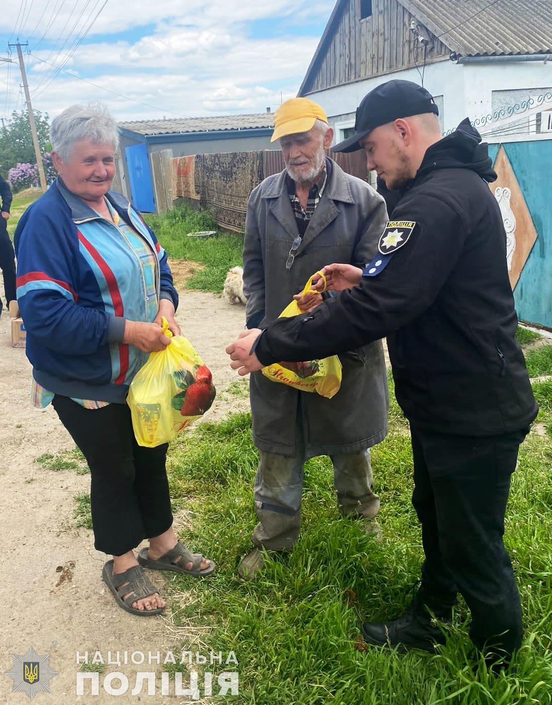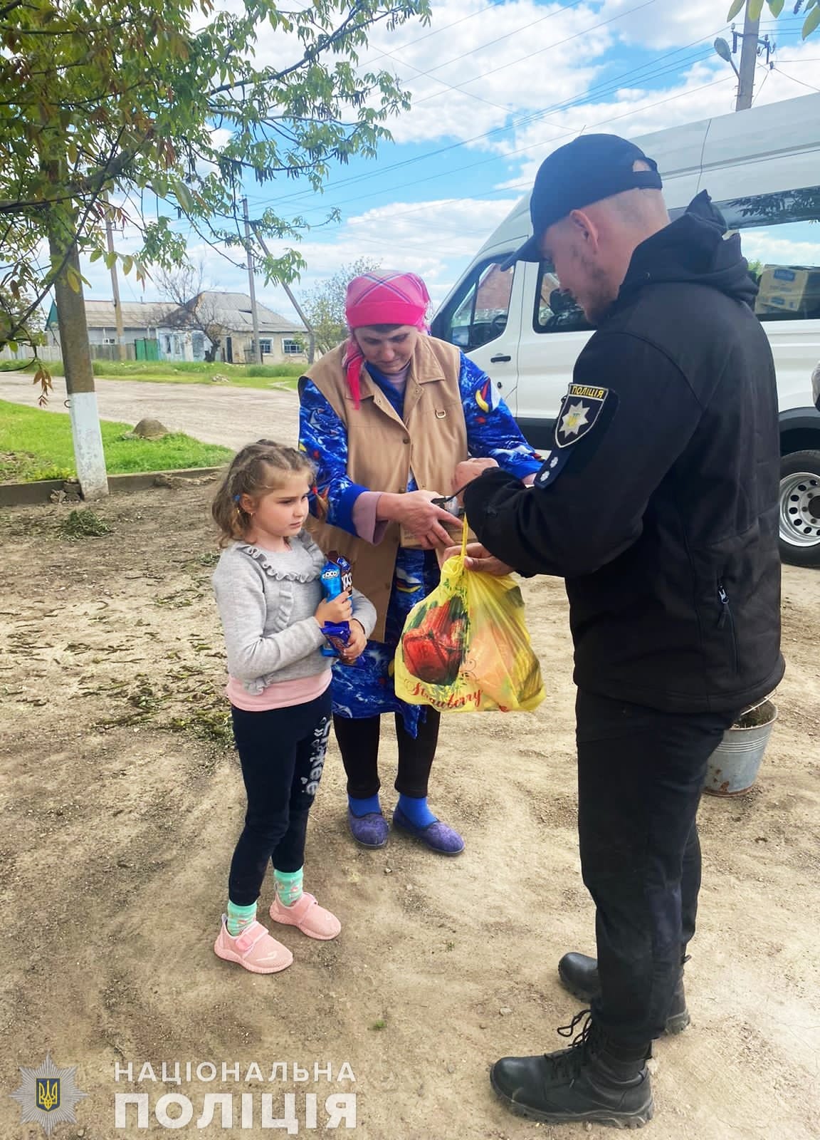 Волонтери та поліцейські передали продуктові набори та взуття мешканцям Снігурівки, а також порадували дітей солодощами.