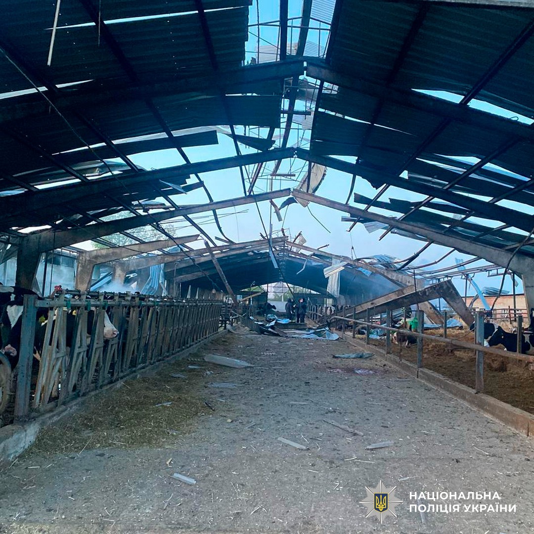 Через удари по Харківщині пошкоджені житлові будинки, лінія електропередач, інфраструктура агрофірм в місті Барвінкове. Внаслідок обстрілів безпілотниками агропідприємства в Харківському районі пошкоджено телятник, адміністративна будівля, три корівники, два складських приміщення та автомобіль. Загинуло 22 корови та поранено 30 голів великої рогатої худоби.