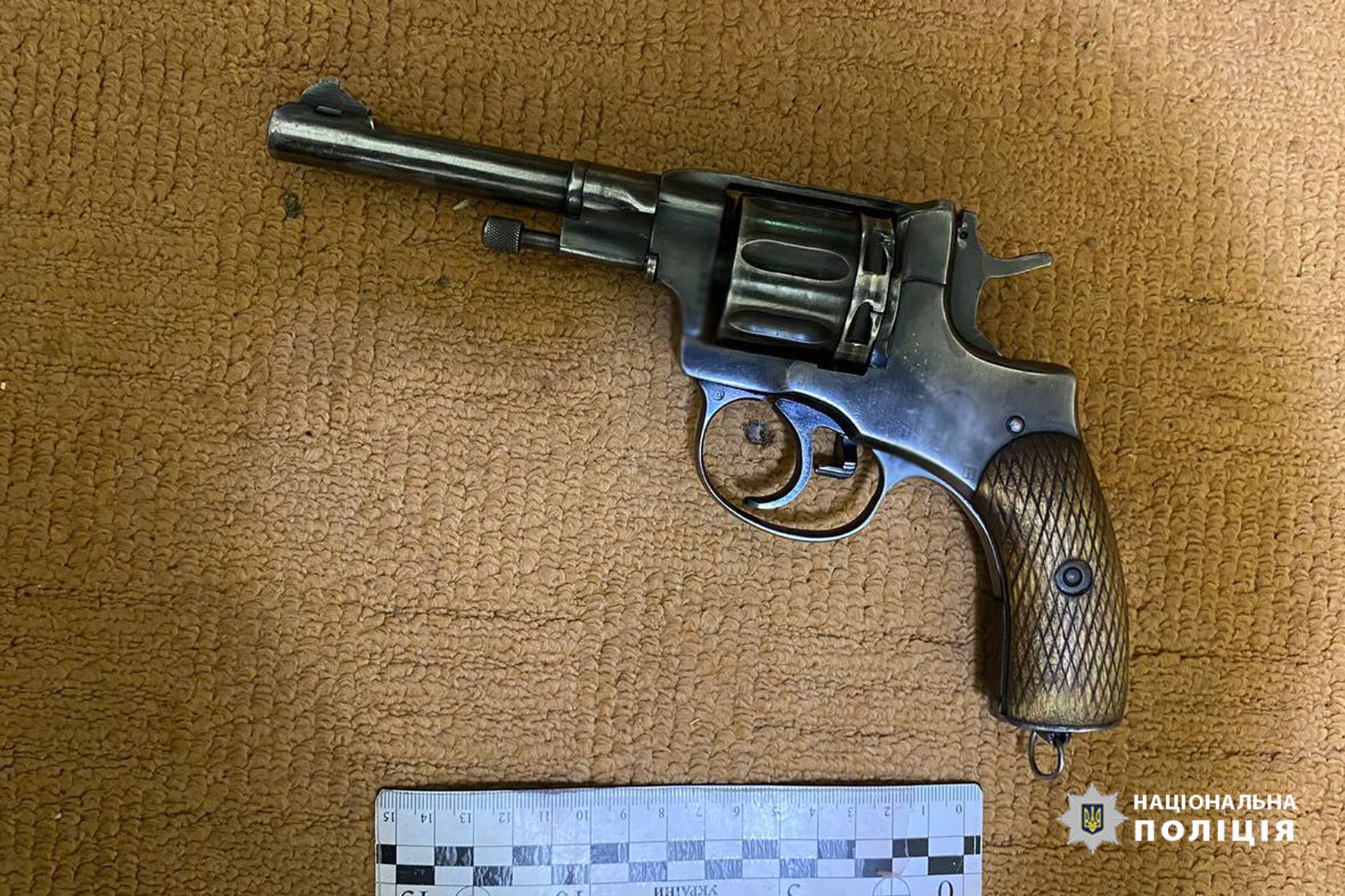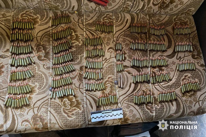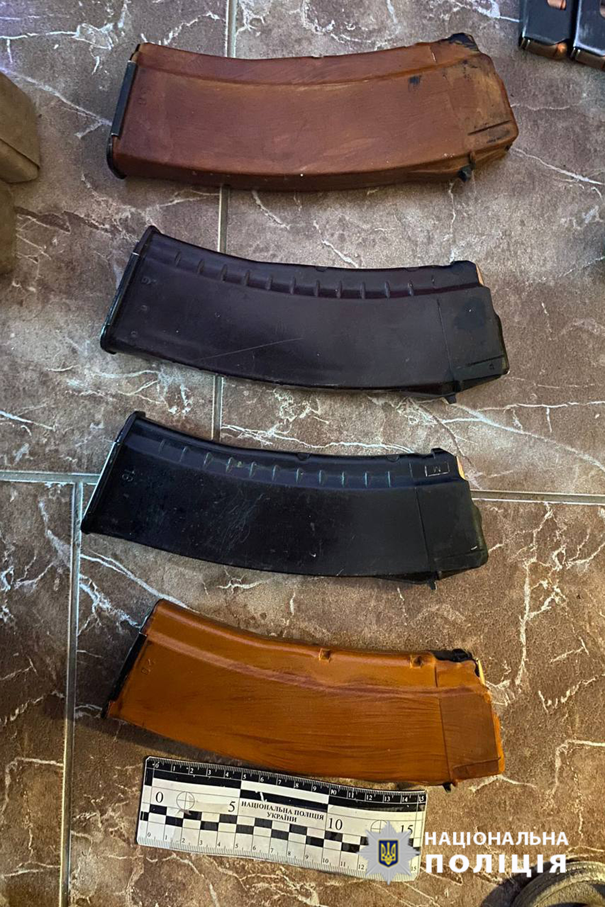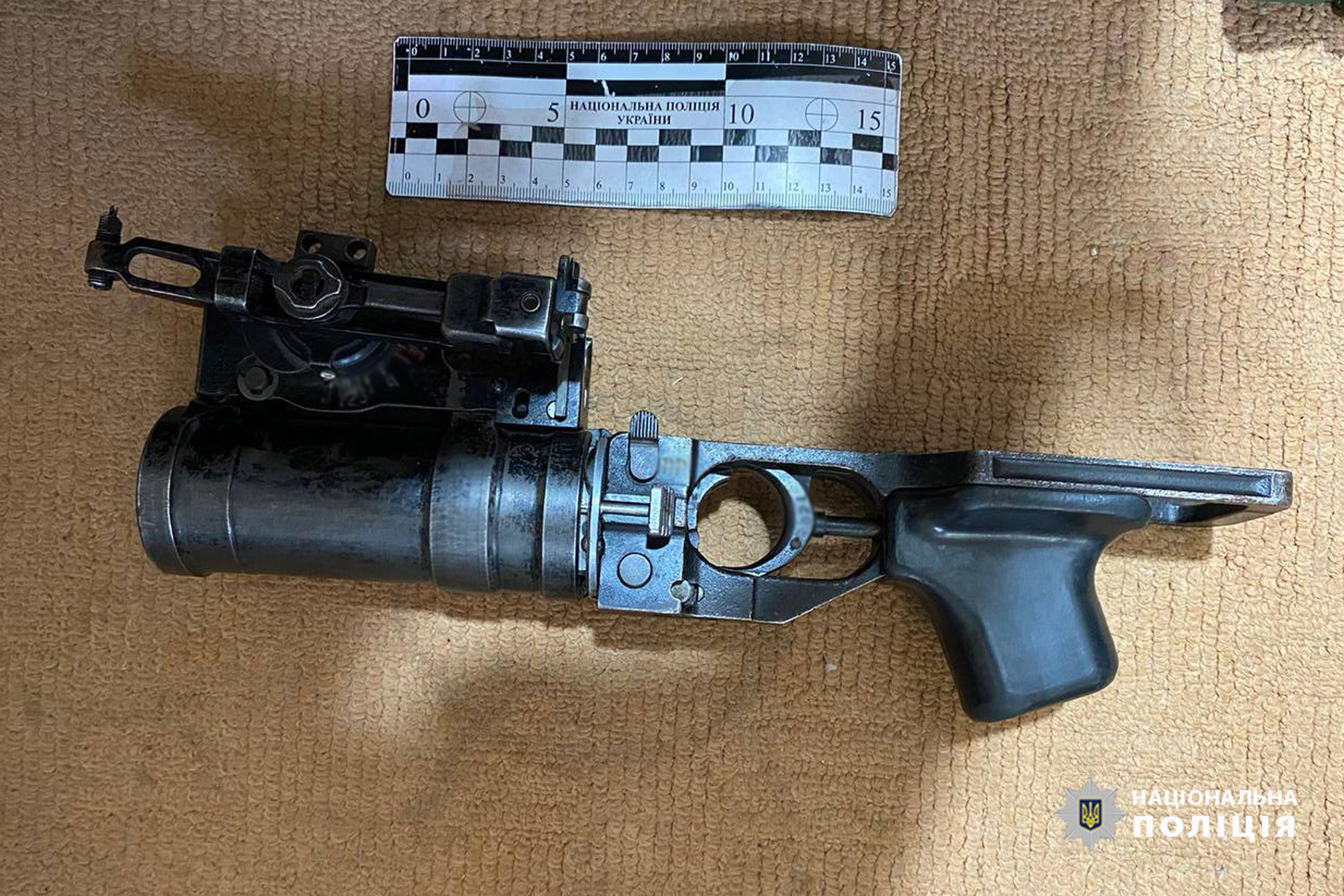 Під час санкціонованого обшуку правоохоронці вилучили підствольний гранатомет та 3 гранати до нього, 2 гранати «HGR SPLITTER», гранати Ф-1 із запалом та «УЗРГМ», 2 пістолета «Макарова», димову шашку, 2 тротилові шашки, револьвер, та більше 1000 набоїв різного калібру. Окрім цього, вилучено психотропні речовини та наркотичні речовини, ймовірно канабіс, та пристрій для їх вживання.