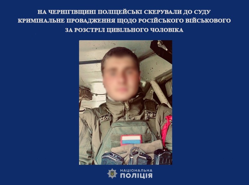 На Чернігівщині поліцейські скерували до суду кримінальне провадження щодо російського військового за розстріл цивільного чоловіка