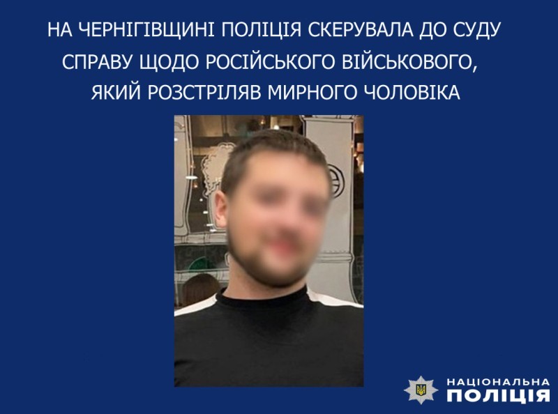 На Чернігівщині поліція скерувала до суду справу щодо російського військового, який розстріляв мирного чоловіка