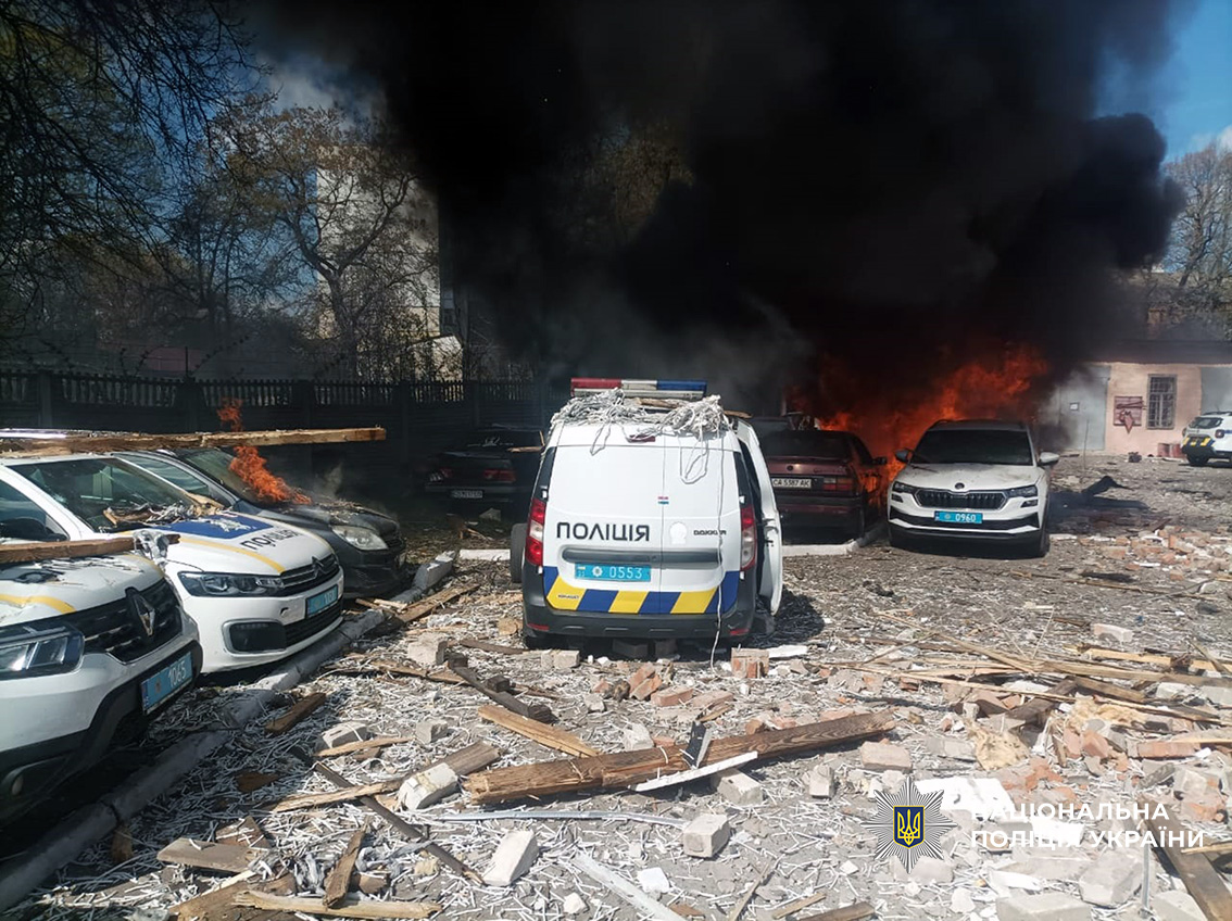 Внаслідок атаки сталася пожежа на території райвідділу поліції. Пошкоджень та руйнувань зазнали цивільна інфраструктура, автомобілі.