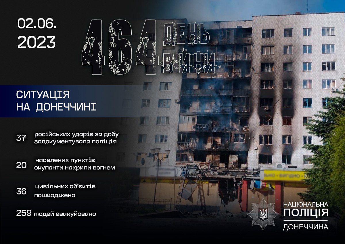Протягом доби окупаційні війська завдали по області 37 ударів. Внаслідок ворожих обстрілів пошкоджено відділення поліції в Торецьку.