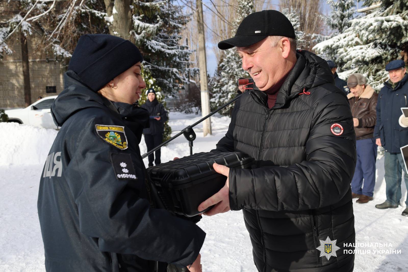 Крім того, в межах підтримки роботи поліцейських офіцерів громад правоохоронцям передали три БпЛА Mavic 3 Pro та два БпЛА Mavic 4T. Їх було придбано за рахунок субвенцій у рамках проєкту, започаткованого Управлінням головної інспекції ГУНП в Харківській області. Сучасні БпЛА дозволять ефективніше здійснювати моніторинг безпекової ситуації, зокрема на деокупованих і прифронтових територіях.