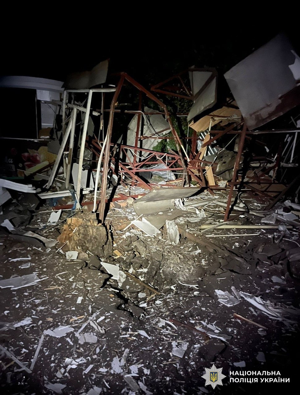 Вночі окупанти били з артилерії по території ринку. Пошкоджено зупинку громадського транспорту, мобільне укриття, приватний будинок, кіоск та дорожнє покриття.