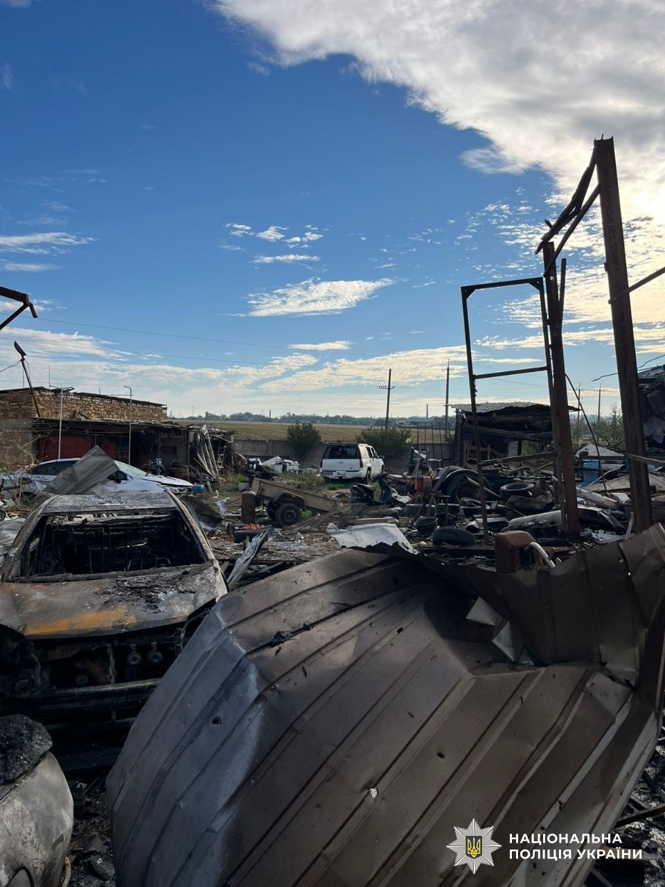 Вдень росіяни ударним дроном атакували АЗС у Чорнобаївці. Пошкоджено станцію та постраждав 31-річний працівник. Його доправили до лікарні з вибуховою та черепно-мозковою травмами, контузією, уламковим пораненням ноги.