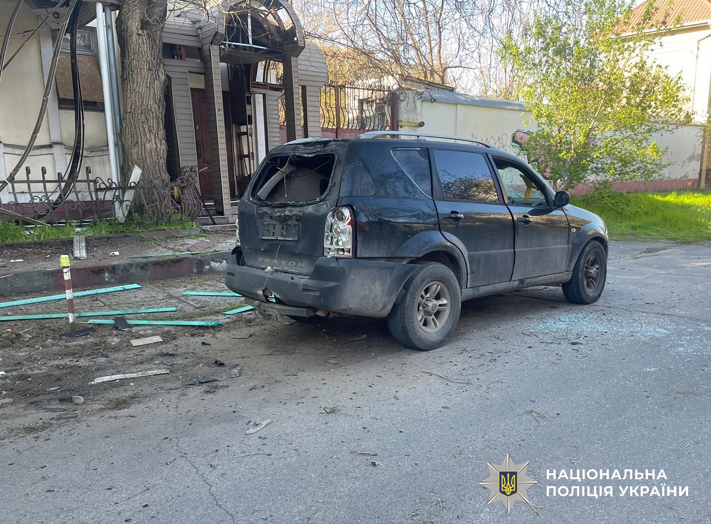 Поліція зафіксувала пошкодження дев’яти приватних будинків, трьох автомобілів, мопеда.